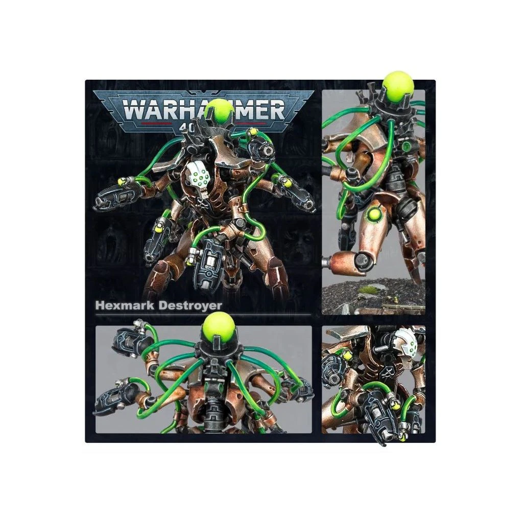 Les Destroyers Hexmarks furent jadis des Traqueurs. Surgissant de leurs oubliettes dimensionnelles tels des prédateurs en embuscade, ces monstres voûtés lâchent des salves fatales aux hostiles. Par ailleurs, leurs optiques de ciblage indépendants et leurs schémas de tirs optimisés ne laissent aucune chance à leurs proies.