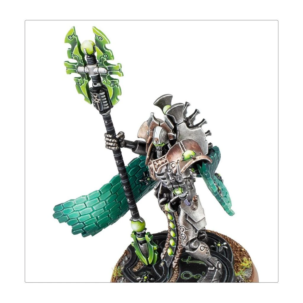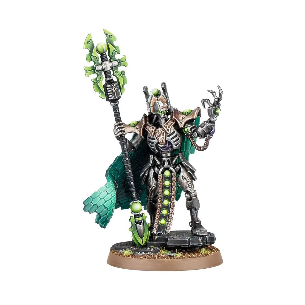 Ce kit plastique permet d’assembler Imotekh, le Seigneur des TEmpêtes, le chef suprême de la Dynastie Sautekh. Cet imposant phaëron se dresse sur une estrade d’architecture nécron tandis que sa cape grouille de scarabées. Sa main gauche est enveloppée du Gantelet du Feu qui génère des vagues de flammes viridiennes, tandis que la droite tient le Bâton du Destroyer, le mortel symbole dynastique de son statut. Le torse armuré d’Imotekh et son front métallique arborent les glyphes seigneuriaux de Sautekh, tandis que d’autres emblèmes necrontyr décorent son coprs mécanique, affirmant son rang de dirigeant d’un empire immortel.