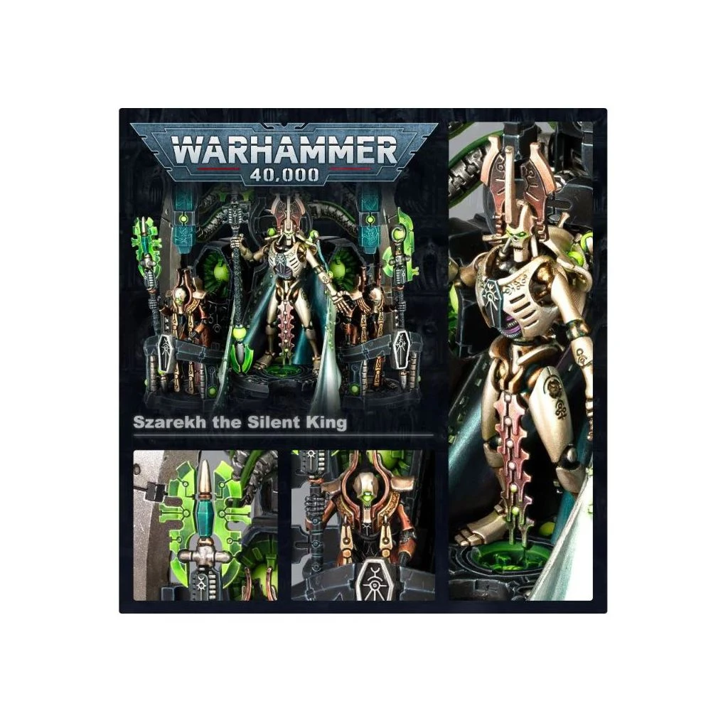 Soyez témoin du retour du Roi Silencieux dans la galaxie! Personnage nécron ultime, Szarekh a sa place dans toutes les collections de Nécrons. Utilisez ses terrifiantes aptitudes de commandant pour améliorer les unités de votre armée, réduisez à néant les plus solides ennemis grâce à tout un éventail d’attaques redoutables, ou offrez-vous simplement une figurine splendide pour la joie de la monter et de la peindre.