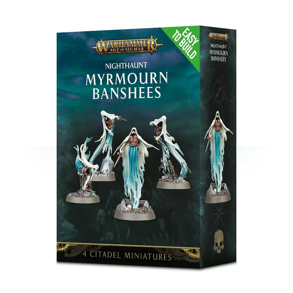 Les Myrmourn Banshees souffrent d’une faim diabolique, car elles ne se nourrissent que de magie. Aucun sort ennemi n’est à l’abri de ces esprits voraces, et elles hantent les Royaumes Mortels en quête d’énergie ésotérique à engloutir. Les Myrmourn Banshees sont attirées par la magie comme un corbeau par un cadavre, et leur amertume envers la vie est telle que n’importe quelle créature mortelle qui se tient sur leur route recevra un coup de leurs dagues de givre.