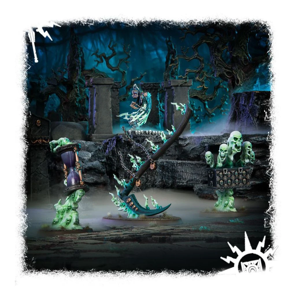 – Une Shyish Reaper: manifestation ultime de la mort de toute chose, c’est une faux gigantesque qui balaie l’air pour emporter les âmes, qui sont expédiées dans les sous-mondes en hurlant;