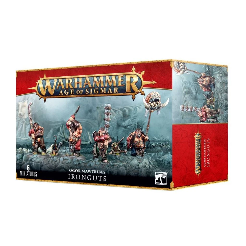 Ce kit plastique contient 110 pièces permettant de monter quatre Ironguts armés de lourdes armes contondantes. Il propose de nombreuses options telles que des têtes avec casque et autres boucliers de récupération. Il y a aussi de quoi représenter un Gutlord, un porte-rune de la Gueule et un Beugleur.