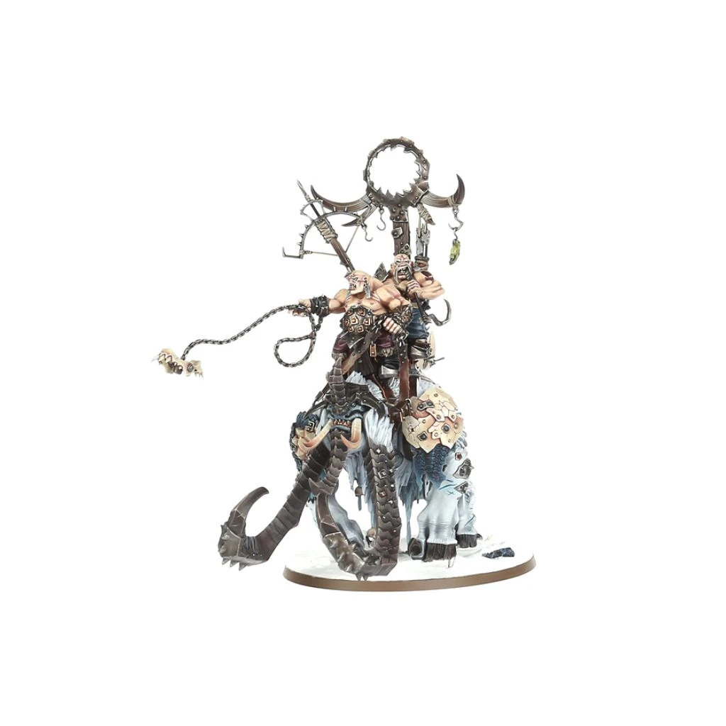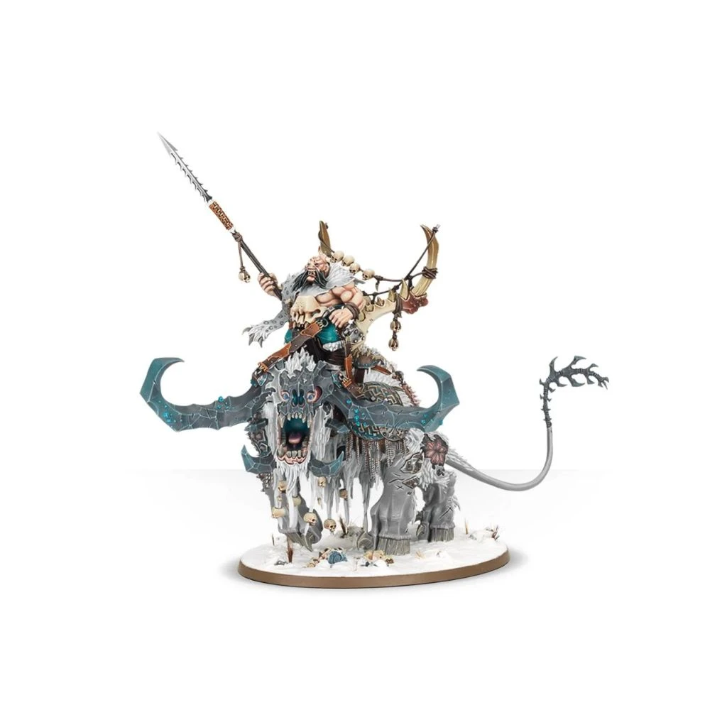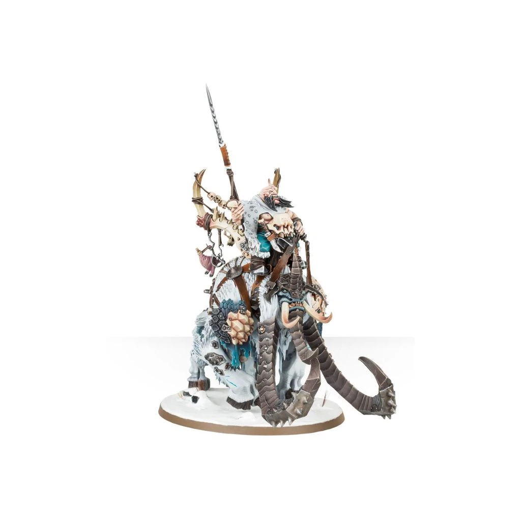 Ce kit plastique contient tous les composants nécessaires pour assembler un Huskard on Thundertusk, avec un socle ovale Citadel de 120x92mm. Le kit permet l’option d’assembler un Frostlord sur Thundertusk, des Beastriders sur Thundertusk, ou un Huskard, un Frostlord ou des Beastriders sur Stonehorn.