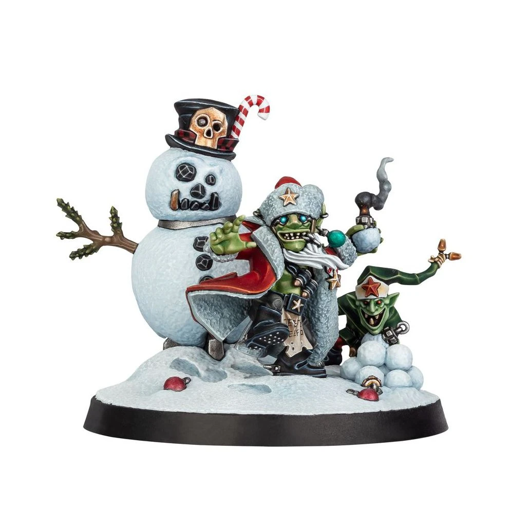 Ce kit en plastique permet d’assembler l’A-boum-inable Homme des Neiges de Gobbo le Rouge, qui représente votre grot malicieux préféré monté sur un socle scénique, prêt à lancer la bataille de boules de neige la plus épique de l’histoire. Il est accompagné par son rival devenu son meilleur ami, le Grot d’Hiver, et par un bonhomme de neige qui ne va pas du tout exploser…