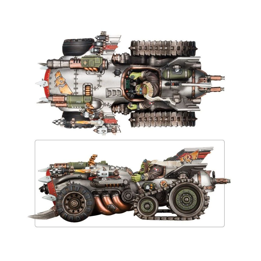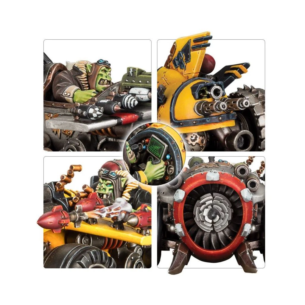 Les Megatrakk Scrapjets sont très appréciés des Fondus d’la Vitesse et des Flyboyz cloués au sol par manque d’appareil. Ces engins fournissent une accélération démentielle, une puissance de feu imposante et la possibilité hilarante de perforer littéralement les lignes ennemies à bord de ce qui est ni plus ni moins qu’une foreuse géante autopropulsée. Ils sont parfaits pour les Flyboyz en train de reconstituer un pactole qui veulent tout de même retourner dans un cockpit et se rappeler le bon vieux temps, où ils pouvaient massacrer l’ennemi en tirant à bout portant (ce qui est souvent la raison du crash qui a mis fin à leurs rêves). Des explosions constellent les lignes adverses une fois que les rokettes et des missiles montés sur les ailes ont filé vers leurs cibles. Pendant ce temps, le mitrailleur grot de queue ouvre le feu avec ses gros fling’ – l’arsenal riveté, boulonné, soudé attaché à un Megatrakk Scrapjet est redoutable.