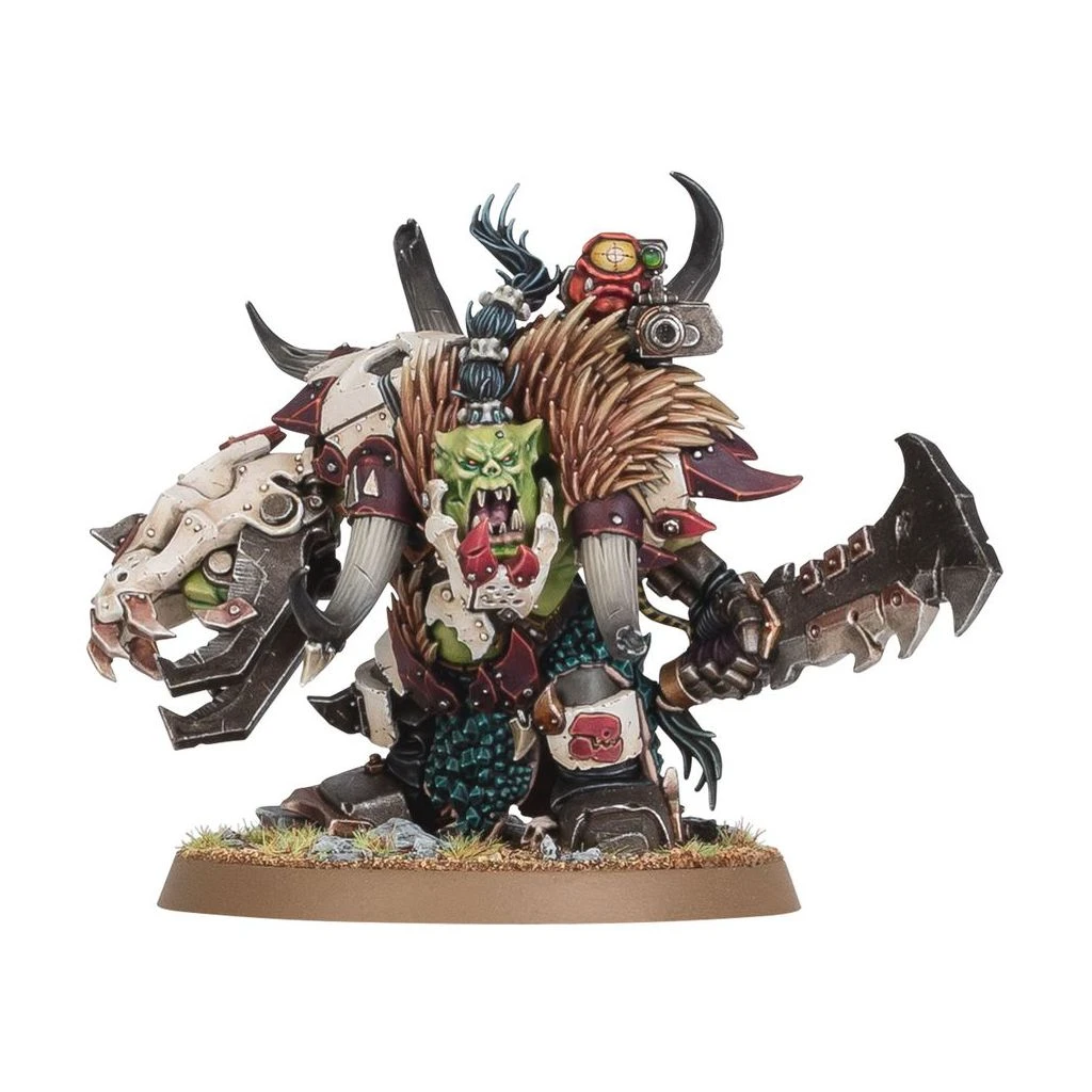 Les Orks aiment se battre plus que tout autre chose. Ces extraterrestres brutaux et violents arpentent la galaxie en vastes hordes et se jettent joyeusement au combat au cri de guerre assoudissant de « Waaagh! ». Les Bouchers d’Morgrim sont une féroce bande d’Alpagueurs, des orks sauvages qui aiment prouver leur robustesse en abattant les proies les plus grosses et les plus hargneuses que la galaxie a à proposer. Qu’ils se ruent au combat sur le dos d’un Squiglier au sale caractère ou qu’ils foncent en avant en bandes de Boyz hurlants, les Alpagueurs peuvent faire de tout ennemi leur prochain trophée.