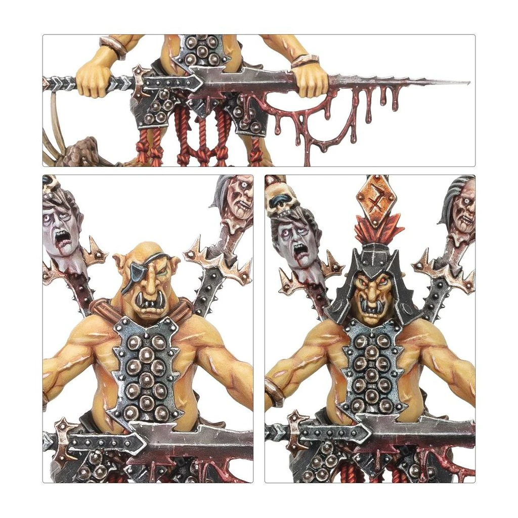 Ce kit en plastique permet d’assembler un Boss Égorgeur Hobgrot à utiliser dans vos armées des Clans Guerriers Orruks dans les parties de Warhammer Age of Sigmar. Ils sont parfaits pour inspirer leurs sous-fifres et grâce à leurs tactiques sournoises et à leur profusion de toxines, ils représentent une menace en duel pour tous les personnages ennemis. Cette figurine peut être assemblée avec une tête parmi deux au choix: une avec un casque et une autre avec un cache-œil.