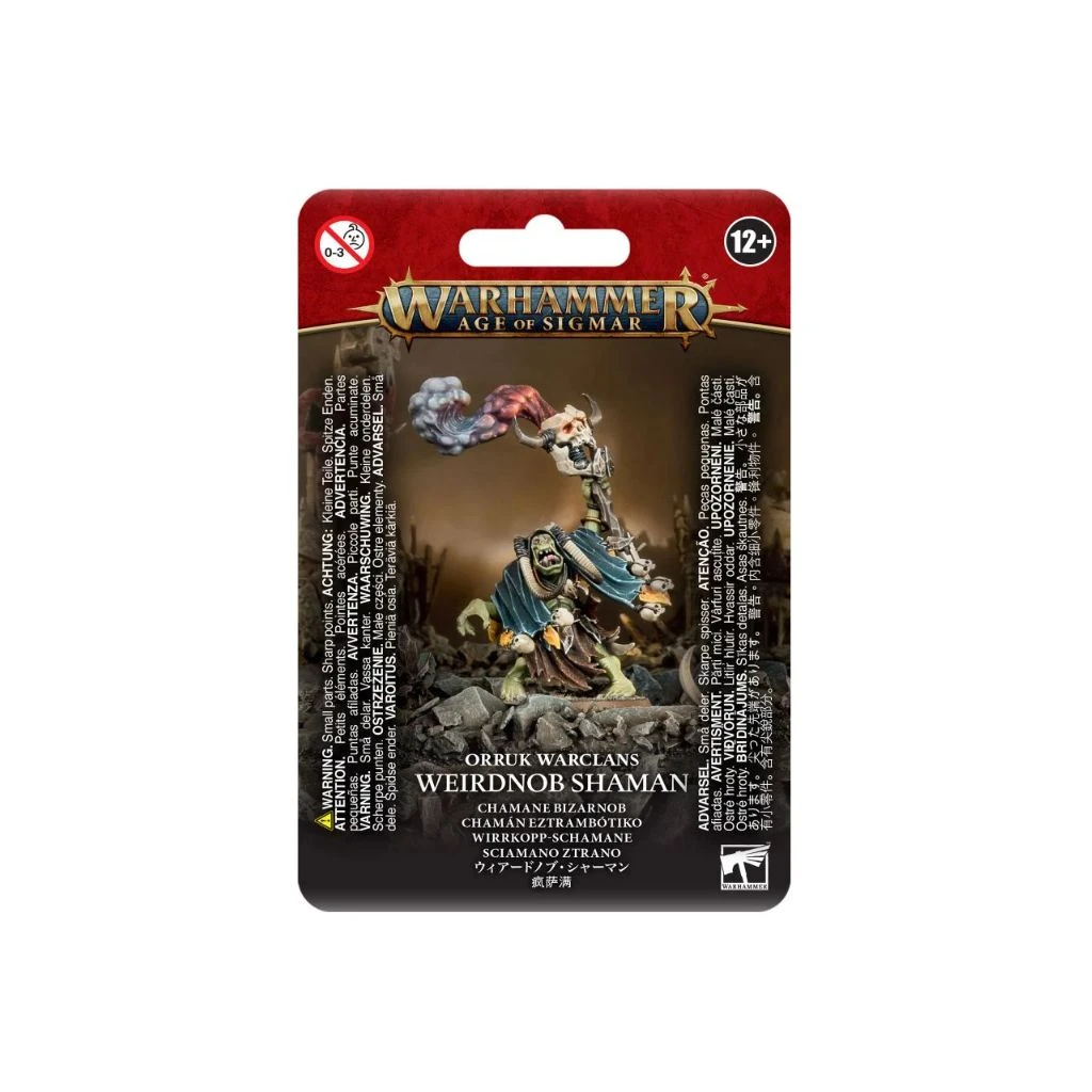 Ce kit plastique contient toutes les pièces nécessaires pour assembler un Weirdnob Shaman, sorcier bizarre et imprévisible des Ironjawz. Saisi en plein spasme tandis qu’il canalise la puissance de la Waaagh!, il est bardé de gris-gris chamaniques et il est armé d’un bâton Waaagh! ardent. 13 composants sont fournis, avec un socle rond Citadel de 40mm.