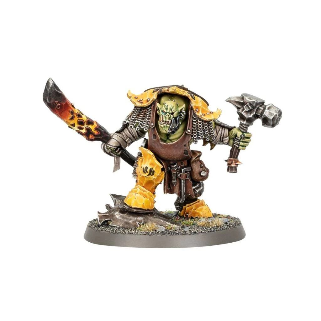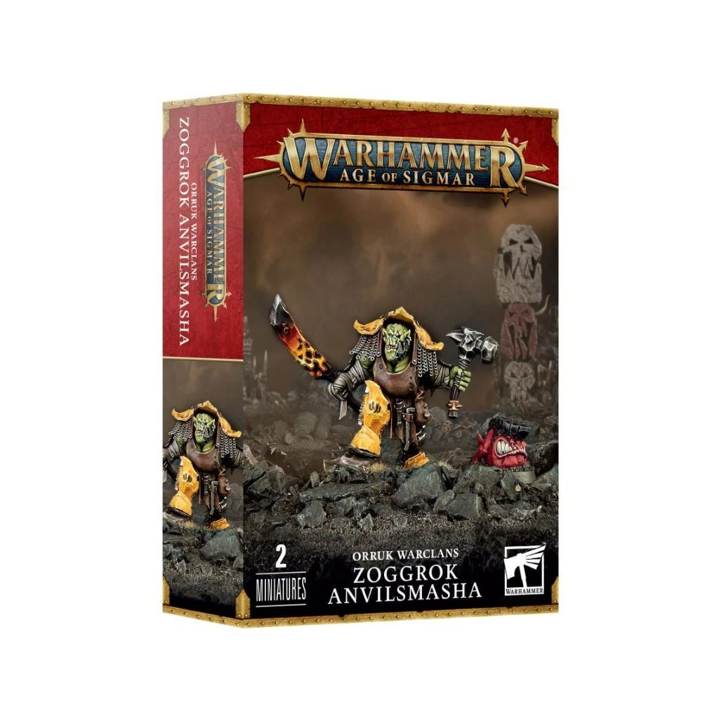 Zoggrok Anvilsmasha est une légende parmi les Mâchefers, car il a maîtrisé l’art de faire rentrer la force destructrice de la Waaagh! dans le fer, la pierre ou l’os à coups de marteau. Accompagné par Klonk, son squig front-de-roc, Zoggrok se sert de ses « outils krazeurs » pour canaliser la puissance de Gorkamorka dans les armes des orruks rassemblés autour de lui. Ces lames chauffées au vert vibrent de rage, impatientes de déchaîner leur énergie au combat.