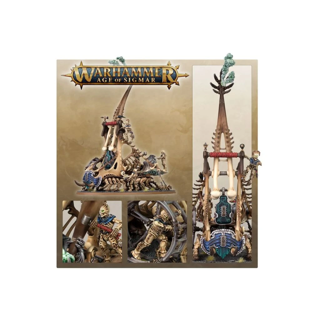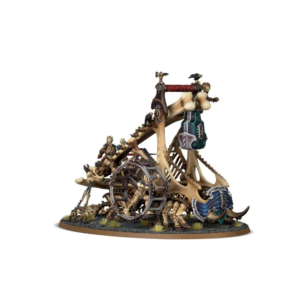 La catapulte occulte qu’on appelle Mortek Crawler inflige la mort de loin avec une précision invraisemblable. Elle peut tirer une grêle de crânes nécrotiques qui mordent et rongent, projeter sur l’ennemi des esprits qui déchirent l’âme, ou expédier de lourds blocs gravés d’imprécations qui peuvent tuer les puissants sur le coup.