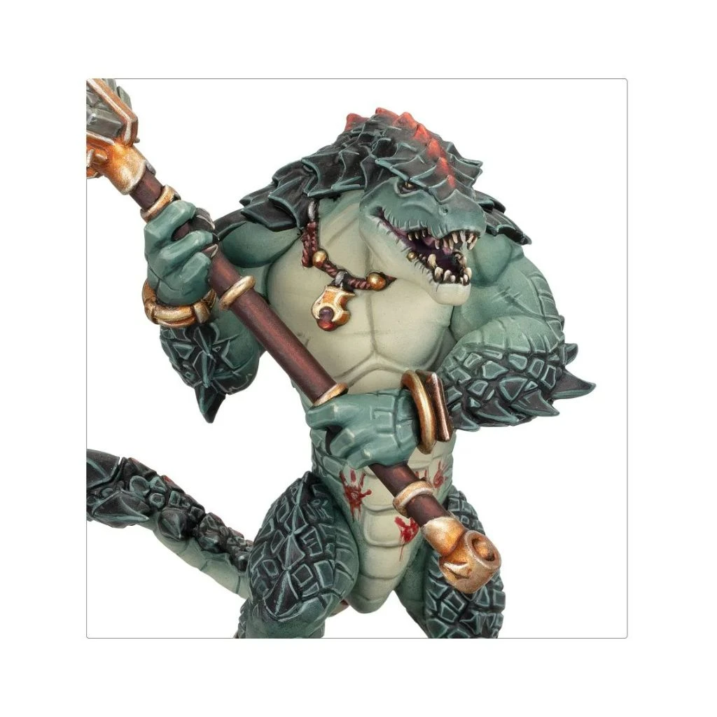 Les Kroxigors sont des brutes reptiliennes à la force monstrueuse, plus grands et plus massifs que les saurus les plus imposants. Créés comme simples ouvriers chargés de construire les temples des Séraphons, les Kroxigors prennent de lourdes massues quand vient l’heure du combat, et avancent aux côtés des cohortes de skinks en écrasant tous ceux qui menacent leurs petits cousins.