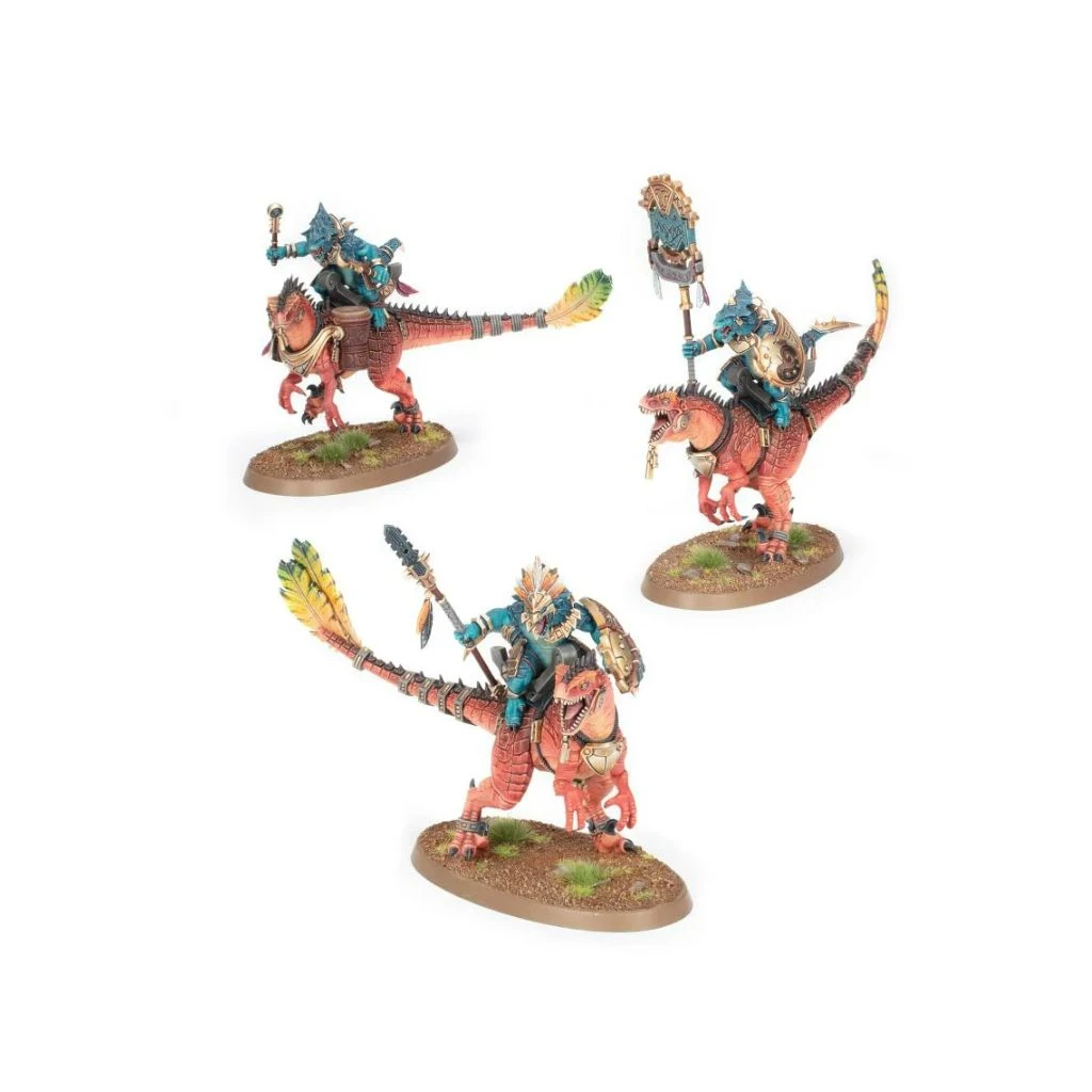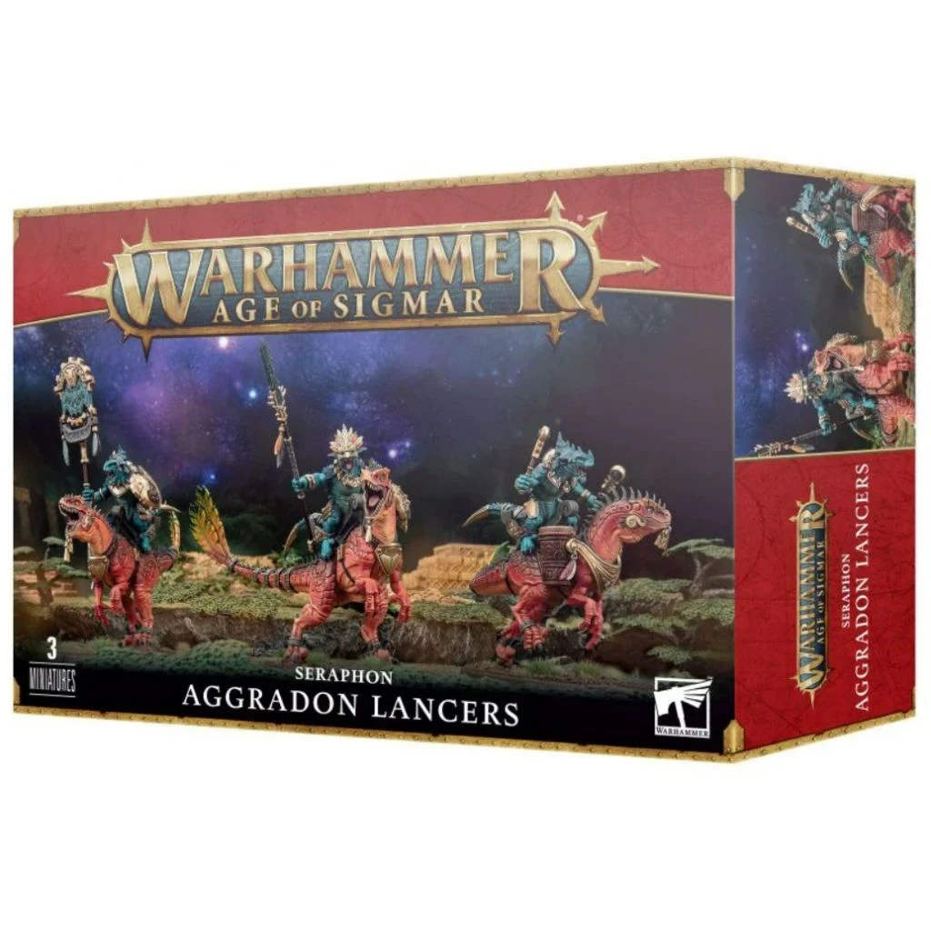 Ce kit plastique permet d’assembler trois Lanciers Aggradons, de formidables cavaliers assoiffĂ©s de sang pour les SĂ©raphons. Les chevaucheurs saurus peuvent ĂȘtre Ă©quipĂ©s d’une massue de cĂ©lestite barbelĂ©e ou d’une lance de cĂ©lestite acĂ©rĂ©e, et ils proposent chacun deux colliers protecteurs pour vous donner le choix dans la position. Une figurine peut ĂȘtre assemblĂ©e comme champion Alpha, avec un choix de tĂȘtes et d’armes uniques, des positions de bras diffĂ©rentes et un bouclier unique. Une autre peut ĂȘtre assemblĂ©e comme musicien Tambour de Guerre, et une autre comme Porte-icĂŽne.