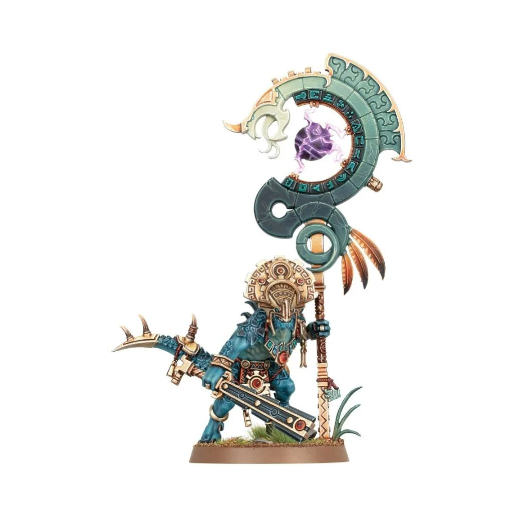 Les Porteurs d’Astrolithe Saurus sont des guerriers marqués par le destin et nés avec un instinct naturel pour la recherche et la mise au jour de reliques de dieux disparus. Les astrolithes qu’ils portent sont des canaux pour la puissance d’Azyr, des totems ophidiens torsadés enveloppant un orbe de célestite flottant. Les Séraphons proches de ces icônes combattent plus vaillamment, renforcés par les énergies célestes qui irradient de l’artéfact.
