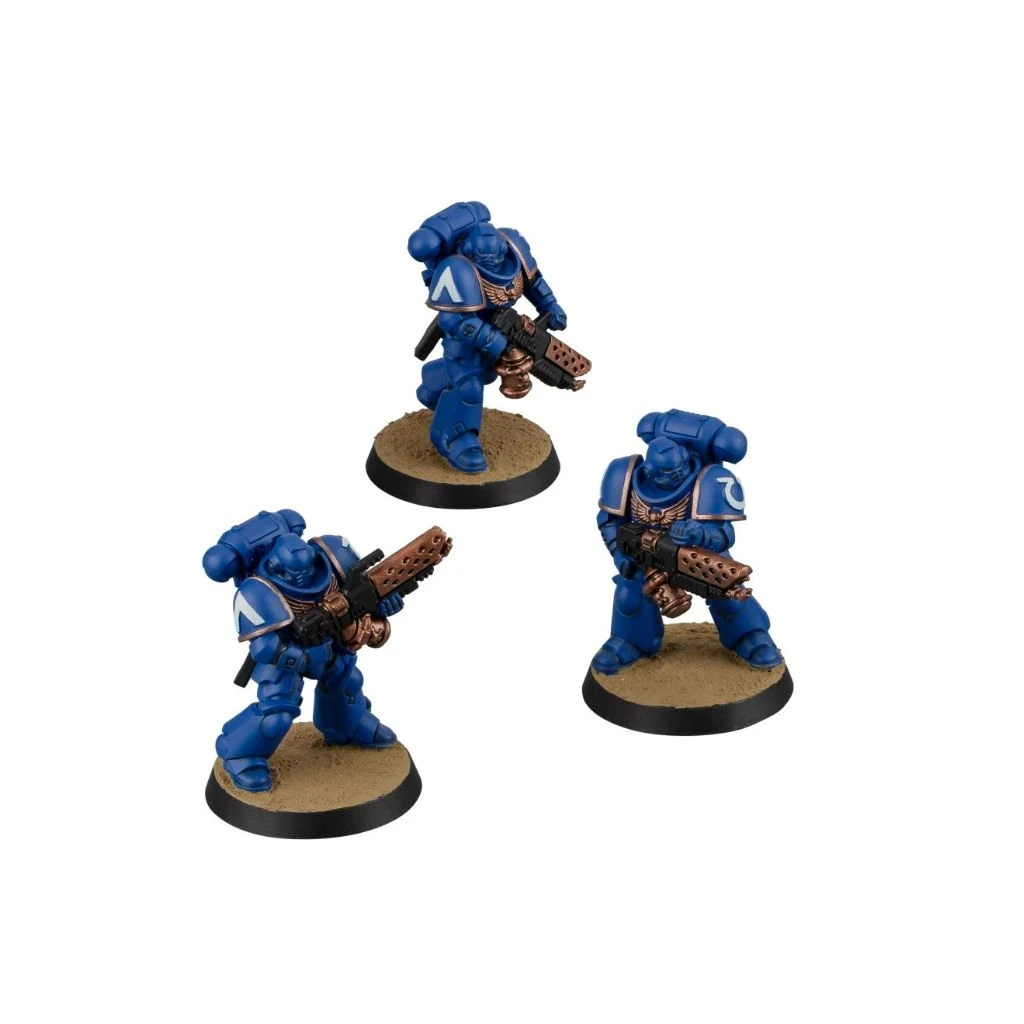 Chaque Marine Infernus est armé d’un pyro-éclateur et d’un pistolet bolter dans son holster et est sculpté comme s’il se dressait bravement face à l’ennemi. Leur armure inclut des marquages d’escouade et le symbole de Chapitre des Ultramarines sculptés sur les épaulettes pour en faciliter la peinture. Ces figurines sont fournies avec leurs socles appropriés.