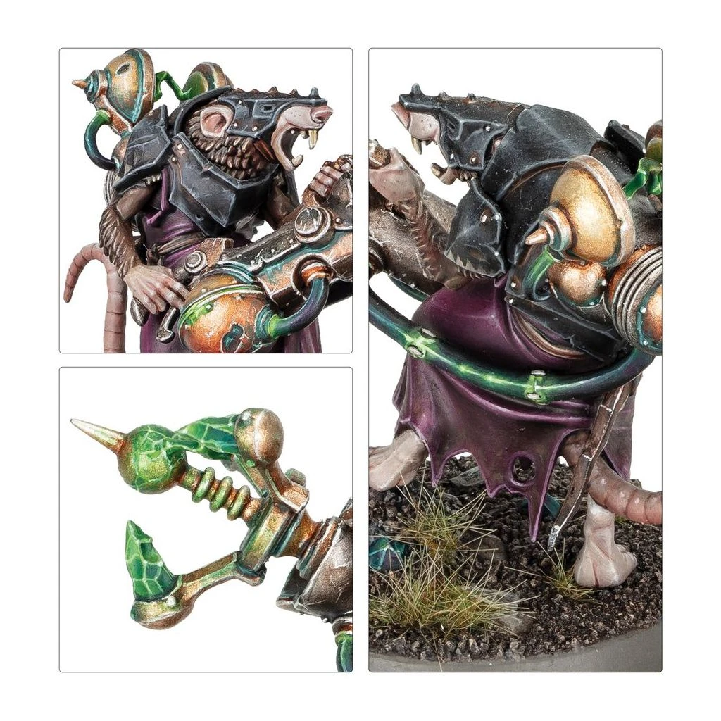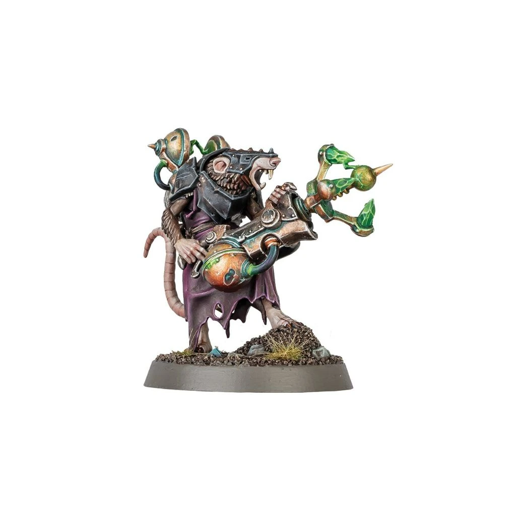 Ce kit permet d’assembler un Galvaniseur Technomage des Clans Skryre, un héros de soutien armé d’un annihilateur à maletension. Ces créatures diaboliques sont redoutables et sont capables de pulvériser les ennemis du Rat Cornu à longue portée.
