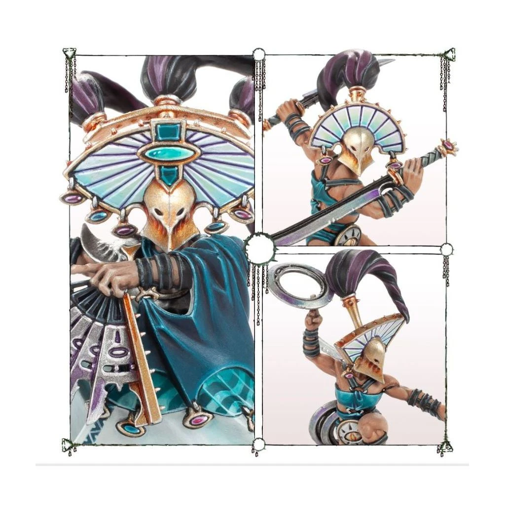 Ce kit plastique permet d’assembler une bande de Cryptocrates, des assassins énigmatiques pouvant être alignés dans les armées d’Esclaves des Ténèbres dans vos parties de Warhammer Age of Sigmar ou utilisés comme une bande complète pour Warcry. Commandés par un Asservisseur drapé de robes et équipé de bombes, ces cultistes acrobates portent des masques sans visage dotés de crêtes élaborées et peuvent être équipés de toutes sortes d’épées, de vouges et d’étoiles de lancer pour affaiblir leurs ennemis par la ruse et des illusions exotiques.