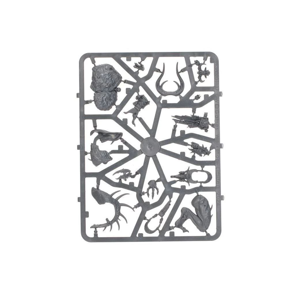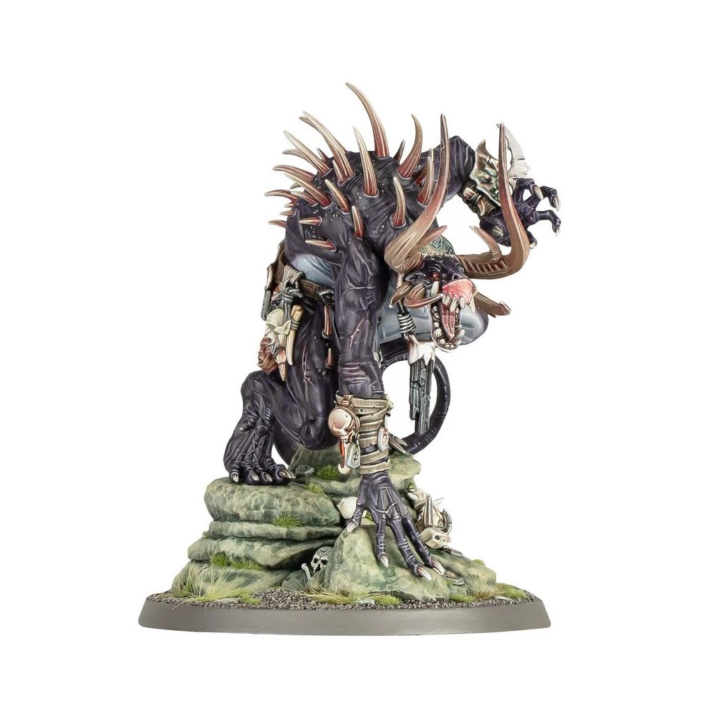 Ce kit en plastique permet d’assembler un Gastefauve Noir-serment, une abomination bossue mais redoutable qui traque les ennemis et les tribus des Esclaves des Ténèbres. Ce formidable kit contient différents choix de tête, de mâchoire, de défenses, de cou et de cornes pour votre Gastefauve, ainsi qu’une sélection de babioles macabres, ce qui vous permet de créer votre monstre idéal.