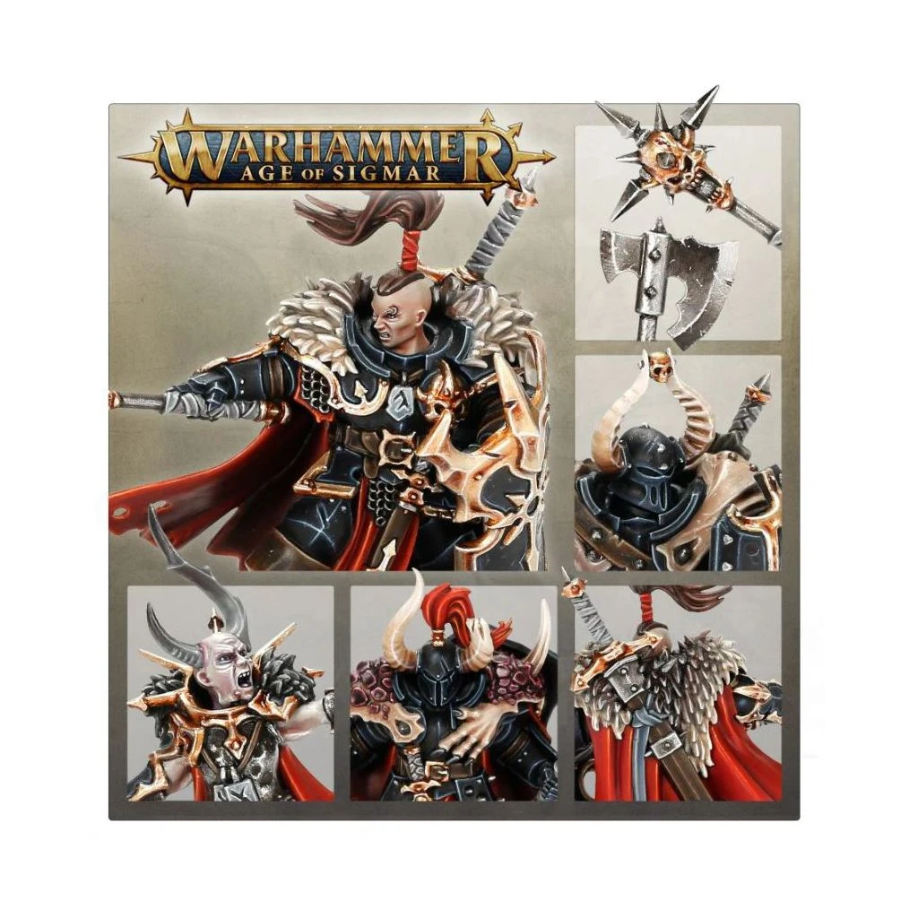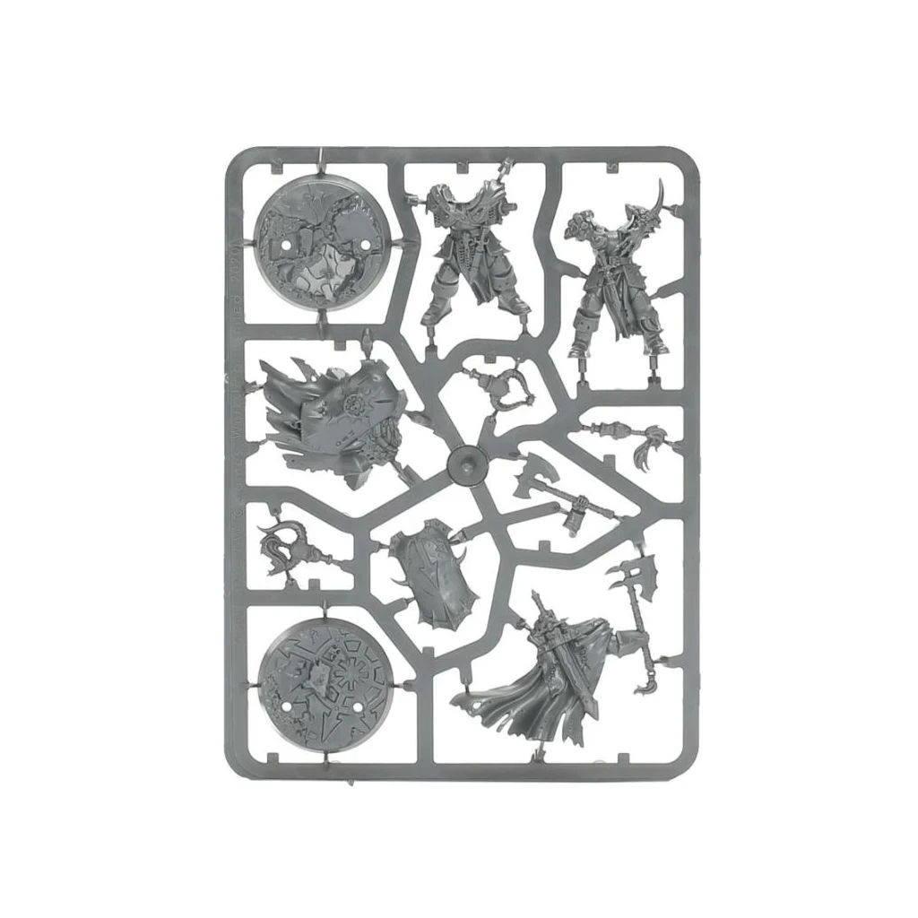 Ce kit plastique permet d’assembler les Ravageurs de Khagra, une bande d’ambitieux Guerriers du Chaos menés par Khagra l’Usurpatrice et accompagnés par la sorcière Zarshia Fiellâme. Ce groupe de personnages uniques ne manque pas de personnalité et de détails : Khagra lève sa masse démon-lié dans une posture de commandement, ses cheveux et sa cape volant dans le vent, tandis que sa sœur cornue invoque des flammes magiques dans sa main et que leurs deux compagnons guerriers du Chaos manient des lames ensorcelées.