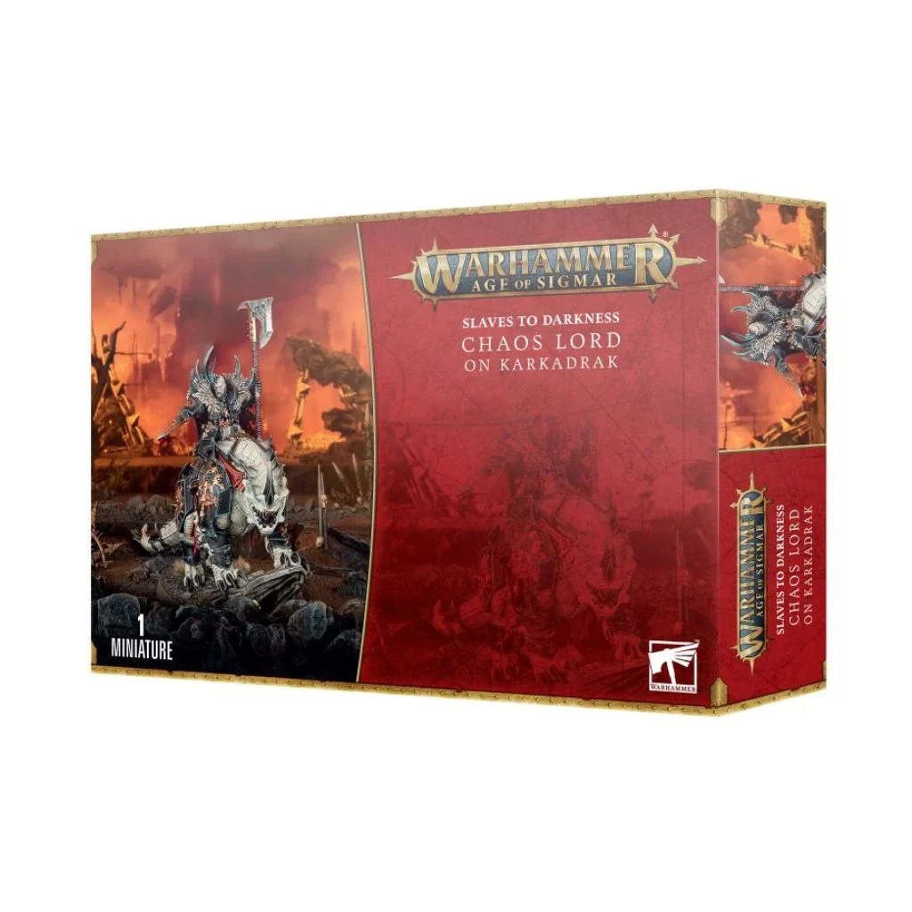 Ce kit plastique permet d’assembler un Seigneur du Chaos sur Karkadrak, une unité idéale pour percer les lignes ennemies et abattre les plus robustes adversaires. Ceux qui sont assez chanceux pour échapper aux cruelles lames du Seigneur finissent déchiquetés par les griffes de sa monture. Ce kit est accompagné de plusieurs têtes pour que vous puissiez personnaliser le commandant de votre armée en lui donnant une tête nue ou casquée.