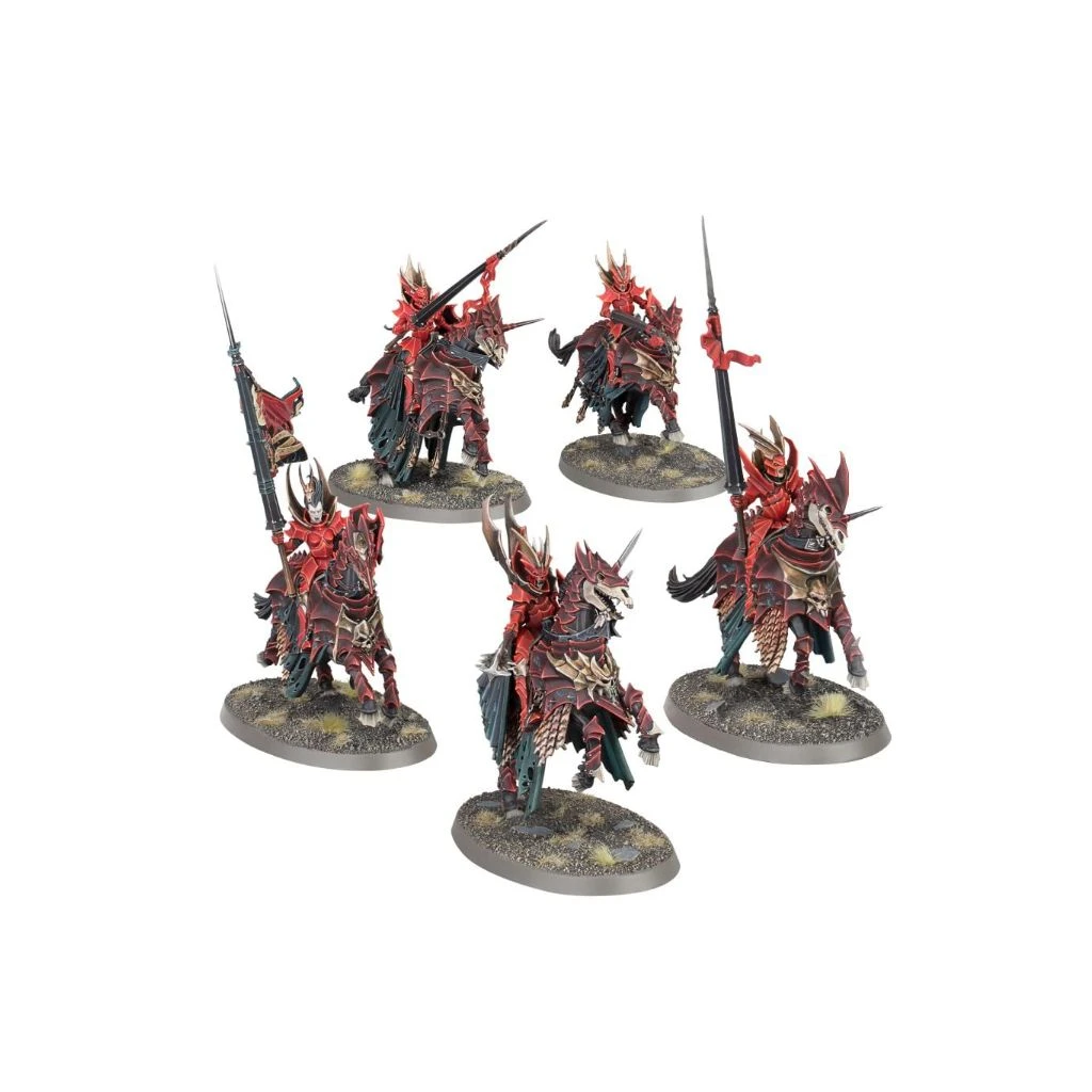 Certains vampires consacrent leur vie éternelle à la maîtrise d’un domaine, et ceux qui veulent devenir des guerriers de premier ordre rejoignent inévitablement les rangs des Blood Knights. Chevauchant des Cauchemars massifs et bardés d’épaisses armures de plaques, ces experts martiaux sont irrésistibles en charge et éprouvent une satisfaction sans pareille quand ils écrasent la simple piétaille.