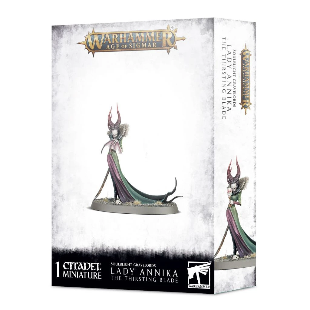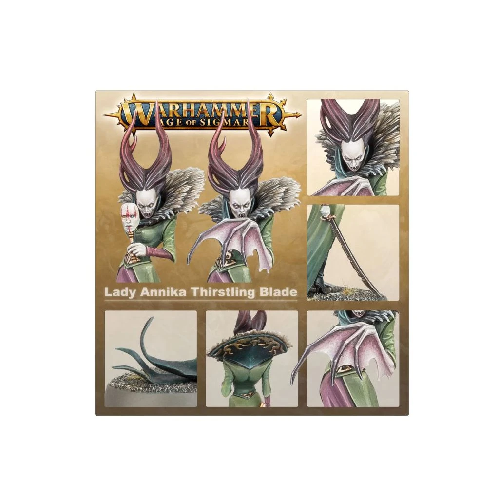 La soif de sang de Lady Annika est légendaire même chez les Soulblights. Au combat, elle attaque tel un mirage sanguin, sa rapière enchantée fauchant ses ennemis quand ils glissent et trébuchent sur le sang qui s’accumule inévitablement à ses pieds..