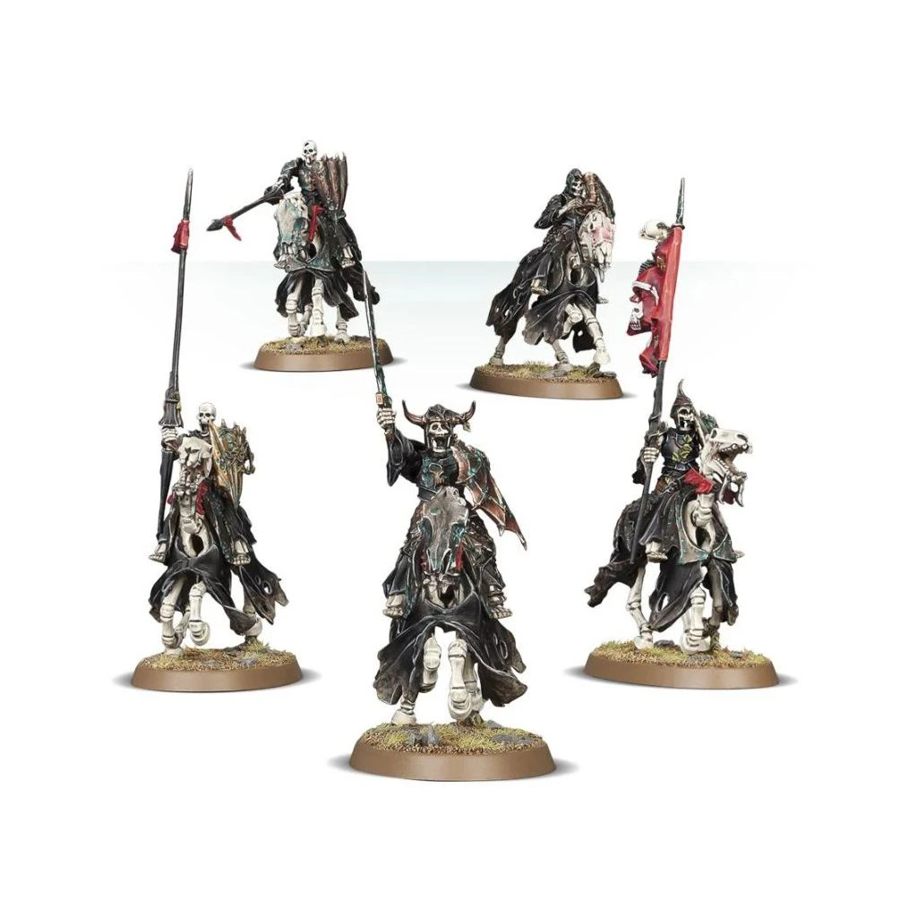 Ce kit plastique contient 91 composants avec lesquels monter cinq Black Knights avec boucliers des cryptes et lances des tertres. Une figurine peut être assemblée en tant que Hell Knight, chef de l’unité, et deux autres peuvent devenir respectivement porte-bannière et sonneur de cor.