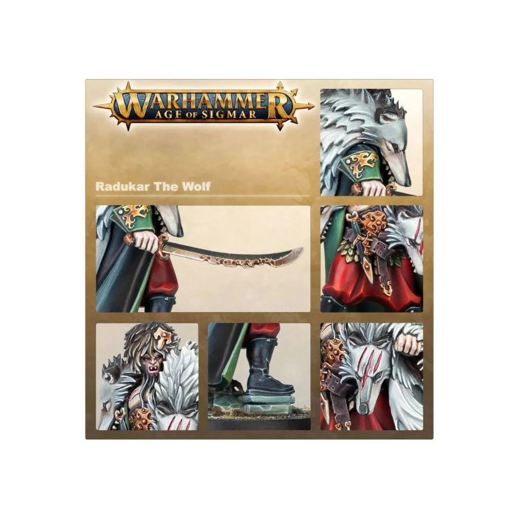 Note: afin de jouer Radukar the Wolf dans les parties de Warhammer Age of Sigmar, vous devez inclure la Cour de Radukar dans votre armée.
