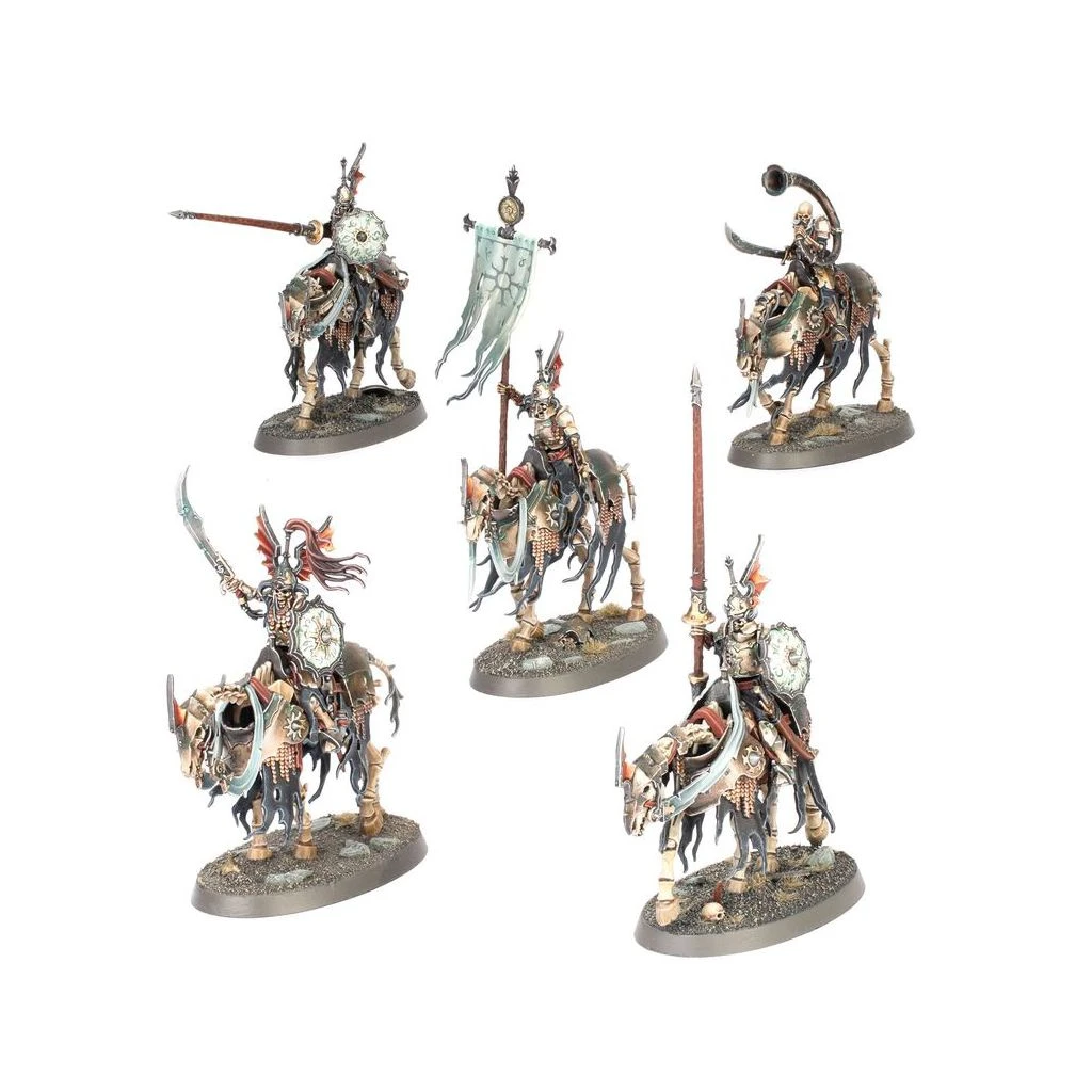– 1x Roi Revenant sur Coursier Squelette (peut autrement être assemblé comme un Seigneur Revenant sur Coursier Squelette)