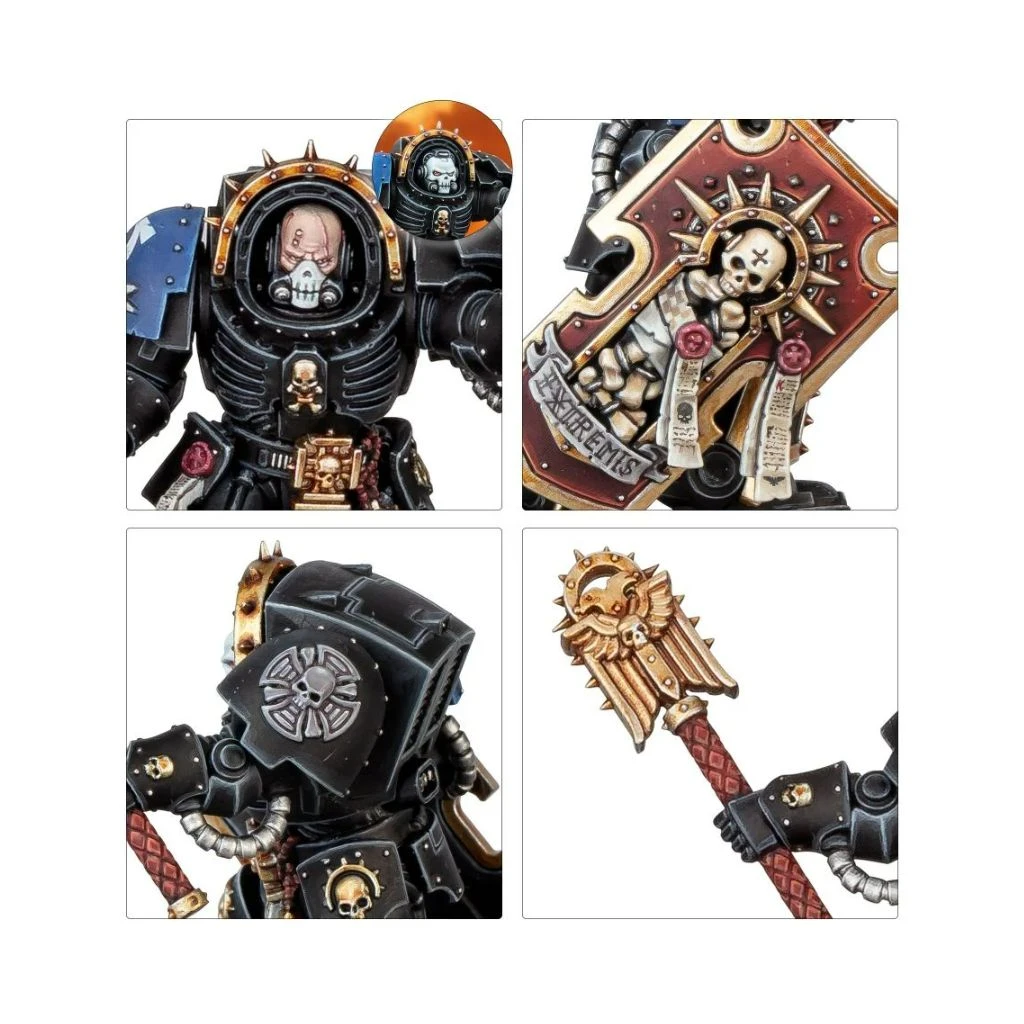 Les Chapelains stimulent les Space Marines au combat par leurs litanies de foi, et jamais ce renforcement spirituel n’est plus nécessaire que lors des actions d’abordage sanglantes ou de l’horreur d’une attaque sur une tête de pont. Ainsi, les Chapelains sont entraînés à porter la formidable armure Terminator pour pouvoir combattre aux côtés de leurs frères de bataille vétérans là où les affrontements sont les plus rudes.