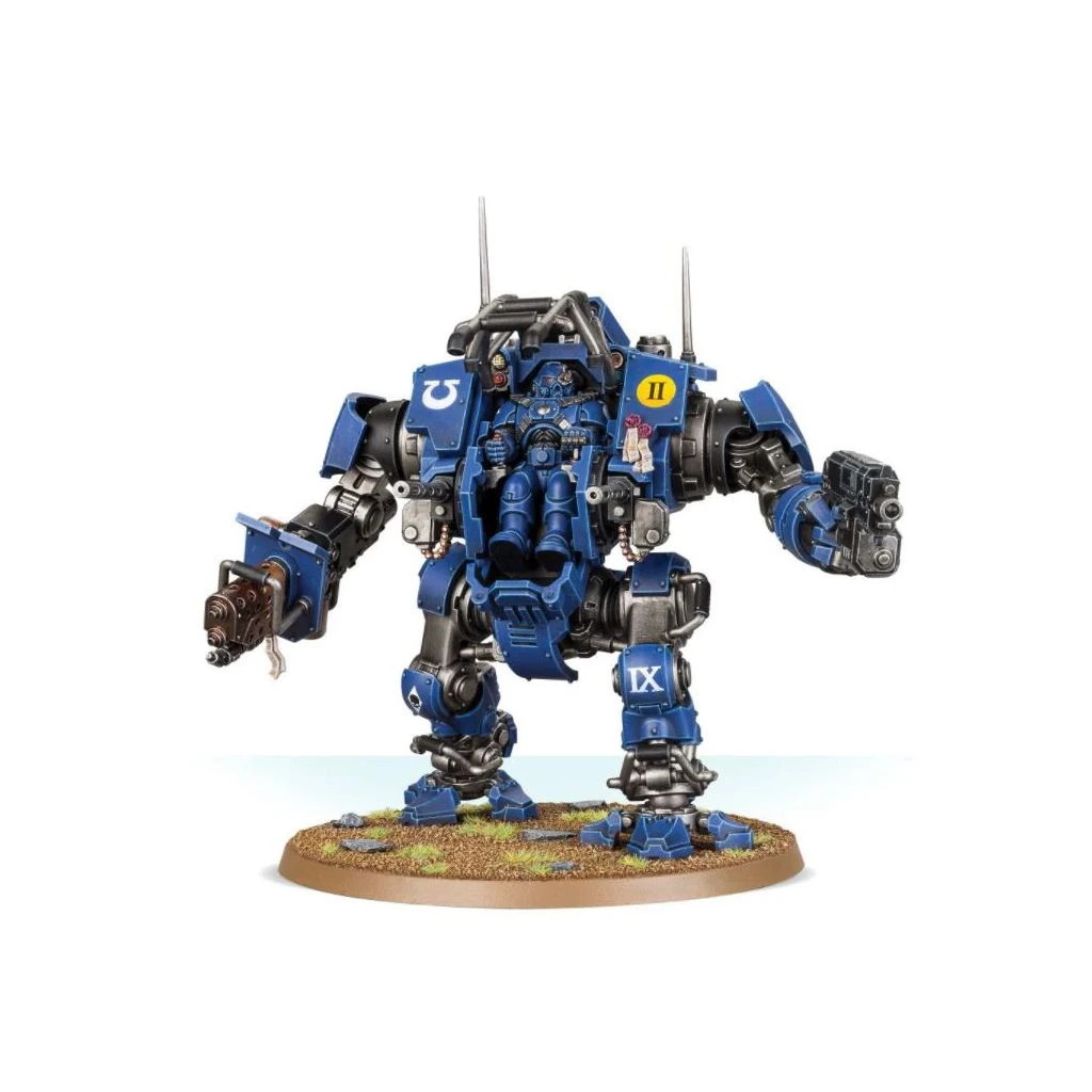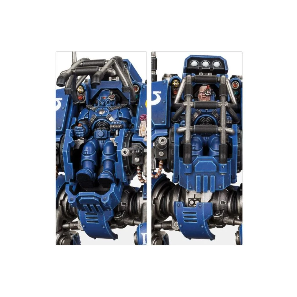 L’Invictor Tactical Warsuit est une variante dépouillée du châssis de Dreadnought Redemptor. Au lieu d’un héros infirme dans un sarcophage, ce marcheur de combat a pour pilote un Space Marine Primaris pleinement valide. On le déploie dans toutes sortes de cas de figure, de l’escorte blindée à l’assaut lors des sièges en passant par la chasse au monstre en milieu urbain. Le rôle le plus typique de ce marcheur demeure le soutien blindé pour les Vanguard Space Marines. Sa combinaison de puissance de feu à courte et à moyenne portée, la solidité de son blindage et l’abnégation de son pilote offrent un appui exceptionnel.