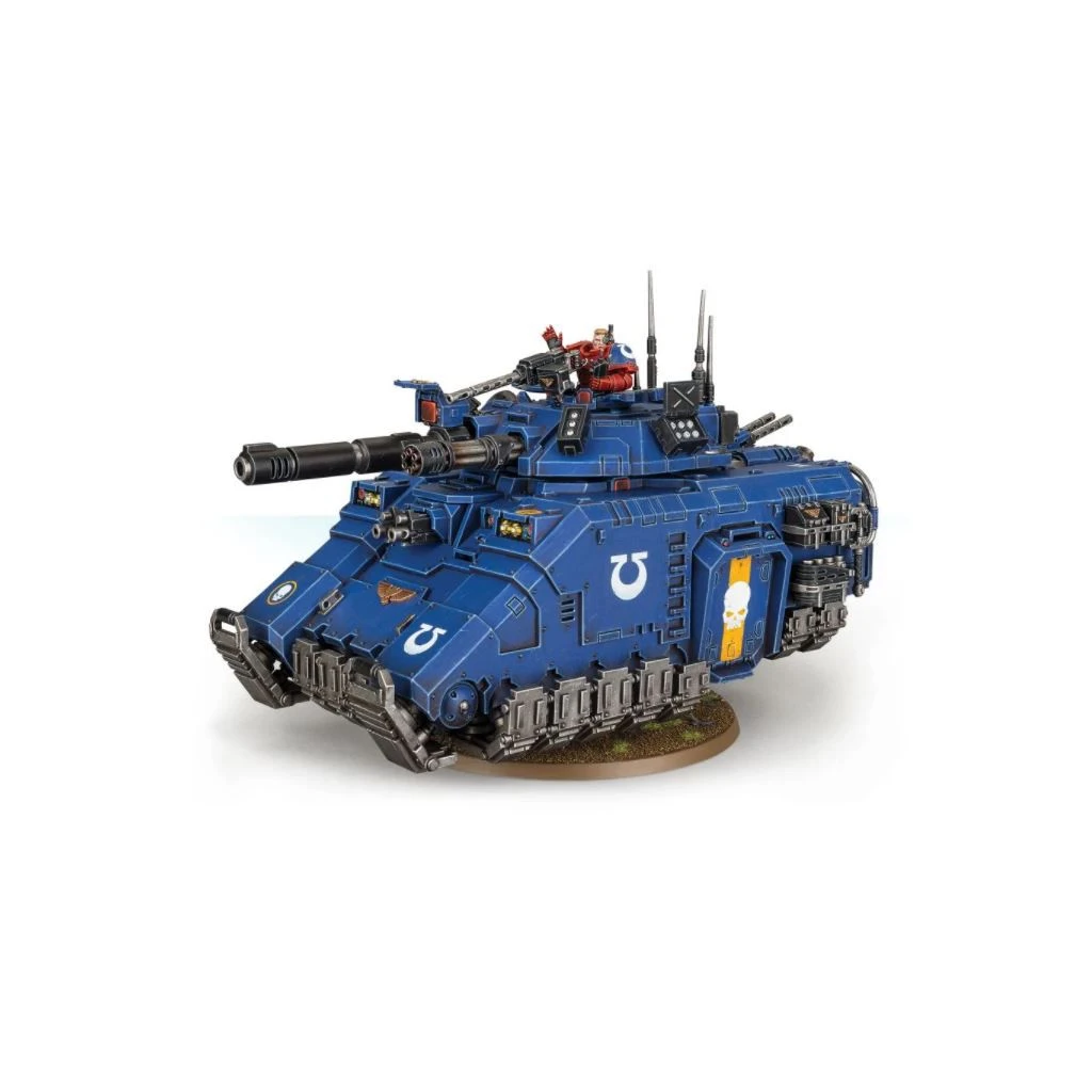 Le Repulsor Executioner est le char d’assaut le plus lourdement armé dont dispose l’Adeptus Astartes, à commencer par son arme principale en tourelle puissamment meurtrière – un macro-incinérateur à plasma ou un destructeur laser lourd – appuyée par un canon gatling Onslaught lourd coaxial. Ajoutez à cela deux lance-grenades Fragstorm, deux bolters Storm, une mitrailleuse Ironhail Icarus jumelée, une mitrailleuse Ironhail et un bolter lourd jumelé de coque, et votre Repulsor Executioner ne manquera certainement pas de puissance de feu! On peut adjoindre à cette capacité offensive des auto-lanceurs défensifs et même une nacelle lance-roquettes Icarus pour la protection antiaérienne.