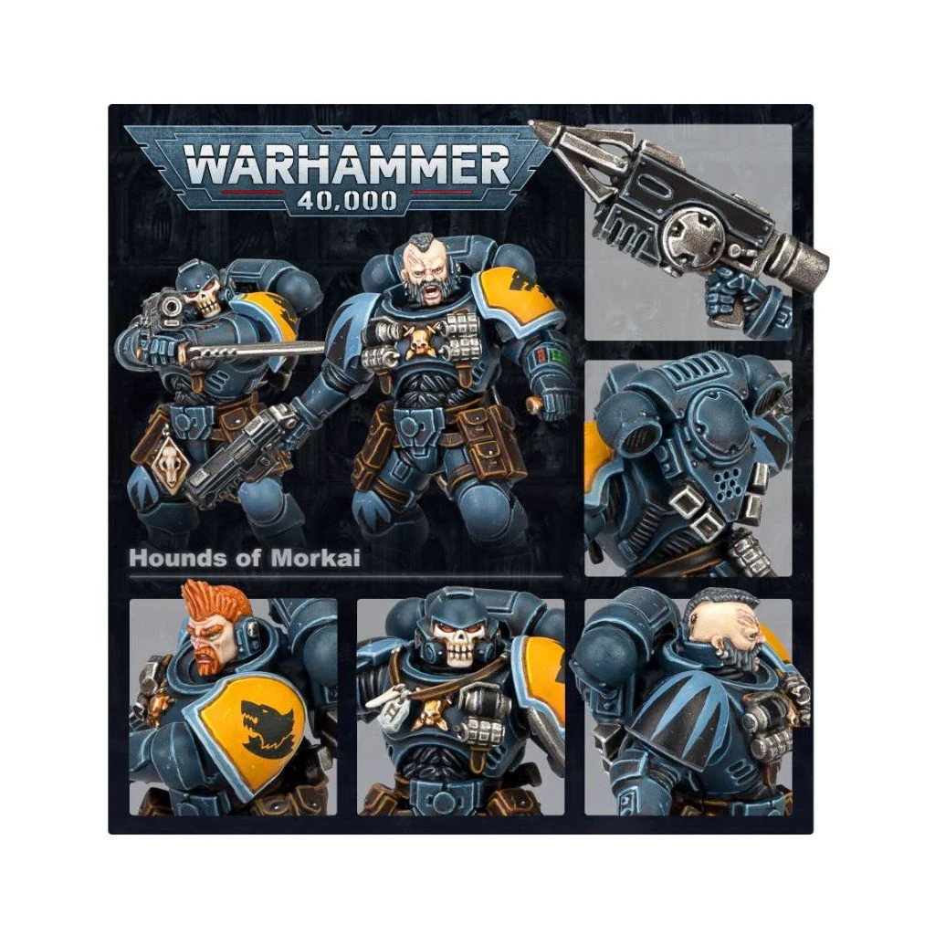 Protégés par leur armure Phobos à la livrée funeste ornée de runes d’abjuration protectrices, les Molosses de Morkai sont des chasseurs de psykers. Après les avoir débusqués avec leurs détecteurs psycept, ces guerriers zélés poussent d’étranges hululements. Leur cri de chasse est amplifié par des circuits runiques, sapant les pouvoirs de leur proie et instillant la peur avant l’assaut.