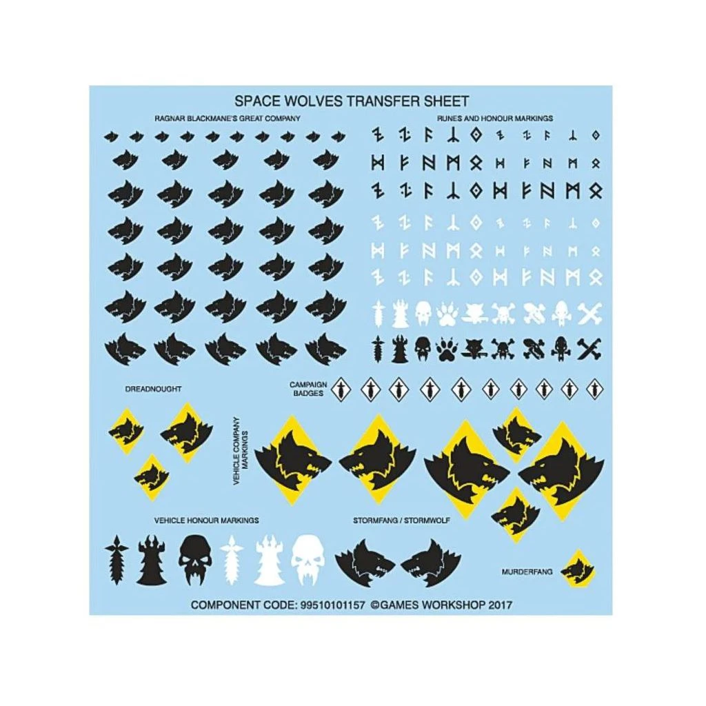 Ce kit est fourni en 135 composants plastique, plus une planche de décalcomanies Space Wolves Primaris.