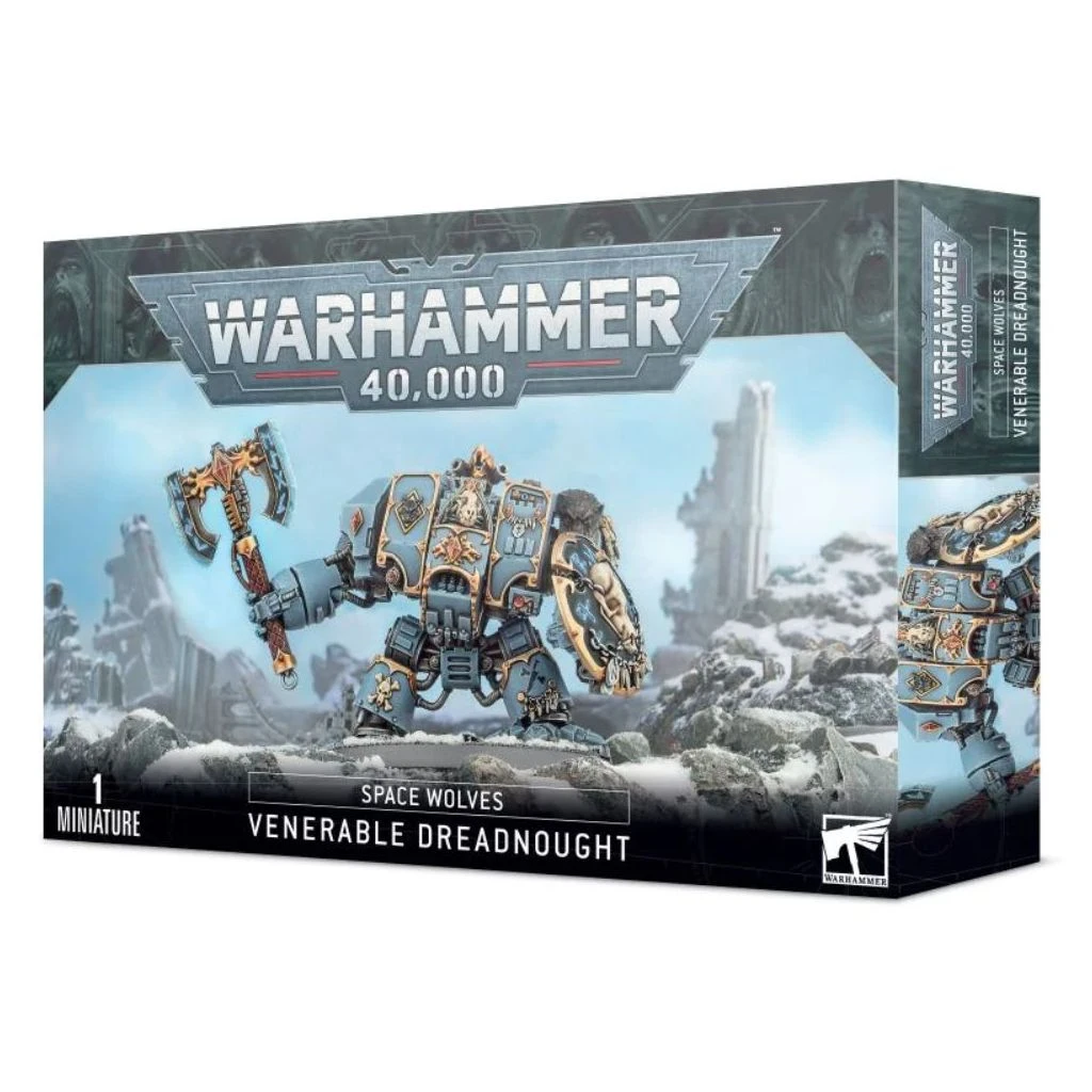 Assemblage imposant d’homme et de machine, le Venerable Dreadnought Space Wolf est un colosse ambulant d’adamantium et de céramite. Au cœur du sarcophage couvert de talismans de chaque Dreadnought se trouve le corps brisé d’un héros légendaire, dont l’esprit reste toutefois intact. Ces guerriers ont arpenté les champs de bataille au nom de Russ pendant des milliers d’années, leur sagesse est aussi profonde que l’océan et leur intuition plus incisive que les dents d’un kraken. Ils sont la vengeance du Père de Tous incarnée.