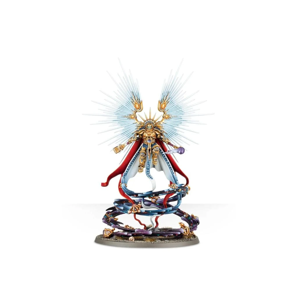 Ce kit plastique fournit tout le nĂ©cessaire pour assembler une incroyable figurine de Celestant-Prime. ArmĂ© de Ghal Maraz – le lĂ©gendaire Marteau de Sigmar – et d’un sceptre de chute de comète, capable de faire tomber du ciel des mĂ©tĂ©ores pour anĂ©antir l’ennemi dans un Ă©clat furieux, ce personnage s’Ă©lève sur une tornade d’Ă©nergie cĂ©leste, il porte une cape ample et dĂ©taillĂ©e, et on peut l’assembler avec les bras levĂ©s ou baissĂ©s. Il se compose de 40 pièces en tout, avec un socle rond Citadel de 100mm.Â