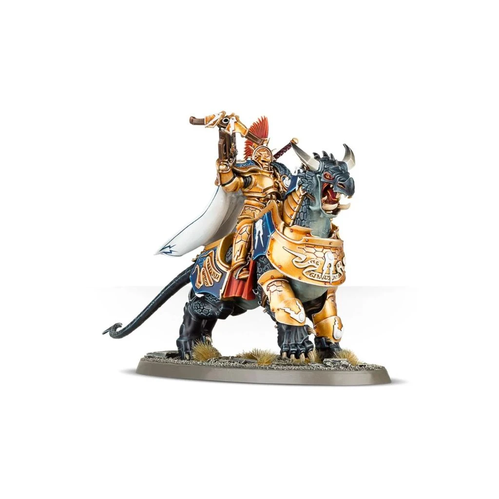 Un Dracothian Guard peut en option être assemblé en tant que Lord-Celestant sur Dracoth armé d’un assortiment d’armes comme le marteau Tempestos, la hache de tonnerre, le marteau de foudre, le glaive Stormstrike et le bouclier de sigmarite.