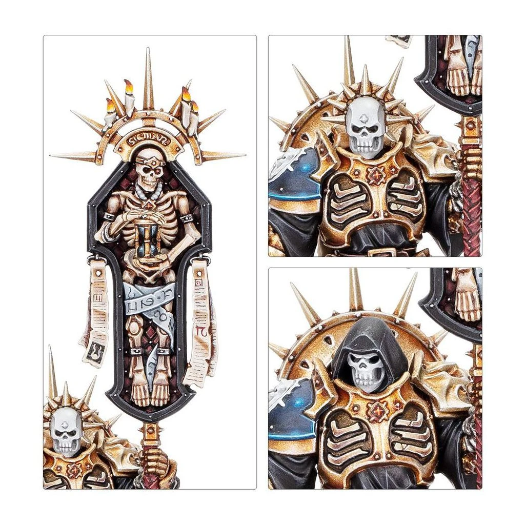 Les Seigneurs-Relictors sont les hauts prêtres des armées du Dieu-Roi, qui en appellent à l’énergie fulminante d’Azyr pour annihiler l’ennemi et pour renforcer leurs alliés épuisés. Tandis que la bataille fait rage, ces sinistres champions protègent les âmes de leurs semblables et se servent de leurs étranges pouvoirs pour les guider en sécurité jusqu’au royaume d’Azyr.
