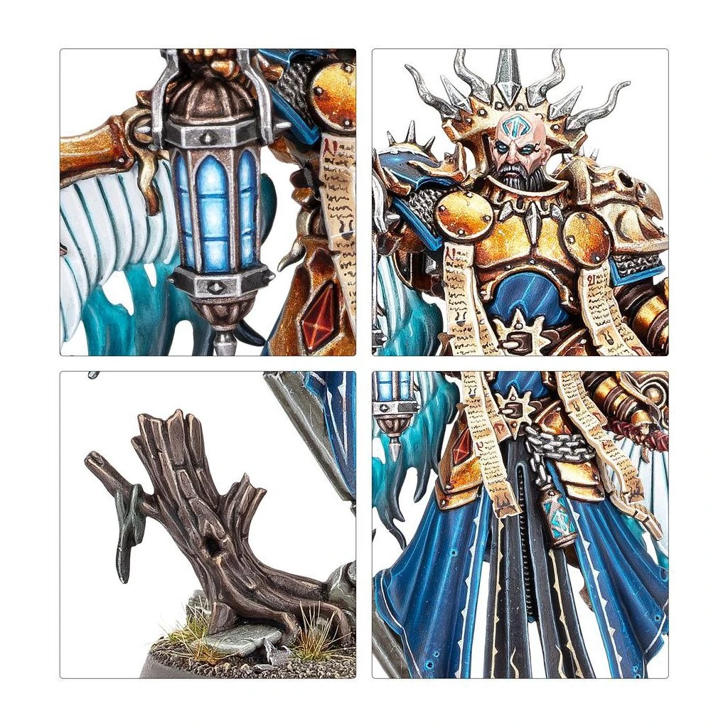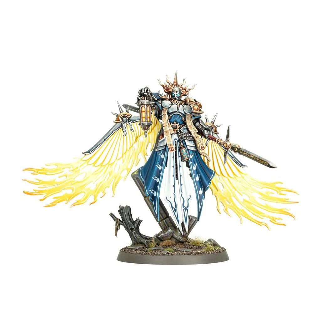 Tornus l’Affranchi est la preuve vivante que même les individus les plus corrompus ne sont pas au-delà de tout salut. Ancien adepte du Dieu de la Peste, Nurgle, il sert désormais Sigmar avec une foi inébranlable. Reforgé en tant que Chevalier-Azyros, il consacre son énergie à porter assistance aux guerriers troublés des chambres de la Perdition. En tant que symbole d’espoir et de foi, il porte une lanterne sacrée, qui guide et soigne les justes tout en brûlant les yeux des ennemis de Sigmar.