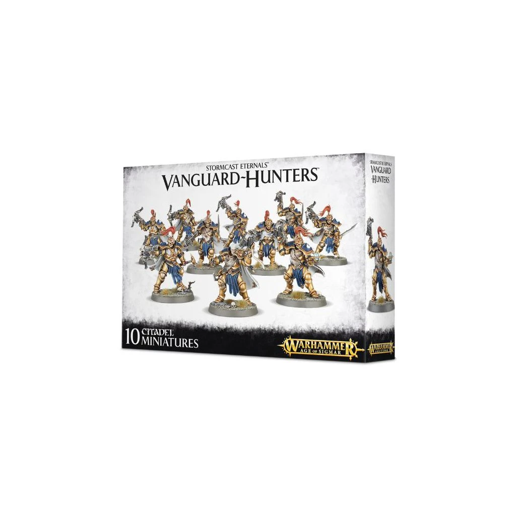 Ce kit plastique comprend tout le nécessaire pour assembler 10 Vanguard-Hunters. Ils sont riches en détails évoquant leurs déplacements constants et leur statut de vétérans: 2 hachettes de choc et 10 jeux de chargeurs Boltstorm à accrocher à leur taille, plus des sacoches et des grappins. En option, il y a 2 bras avec pistolet Boltstorm en cours de rechargement.