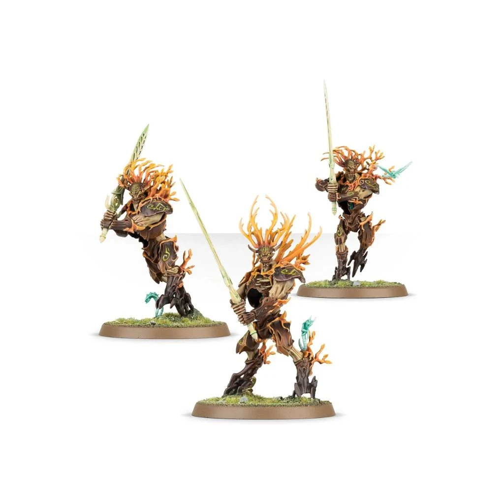 Kurnoth est une des rares divinités que les sylvaneth vénèrent en-dehors d’Alarielle, et il représente la sauvagerie et l’appétit de la nature. Les Kurnoth Hunters sont les incarnations de sa colère. Presque deux fois plus grands qu’une Dryad, maîtres de l’épée, de l’arc et de la faux, ils sont assez forts pour briser un guerrier du Chaos en deux et assez solides pour endurer les pires horions. Agiles, gracieux et stoïques, ils ne partagent pas le caractère versatile de leurs proches; ils se focalisent sur leur tâche, calmes comme des vieux chênes, et profondément investis dans leur combat.