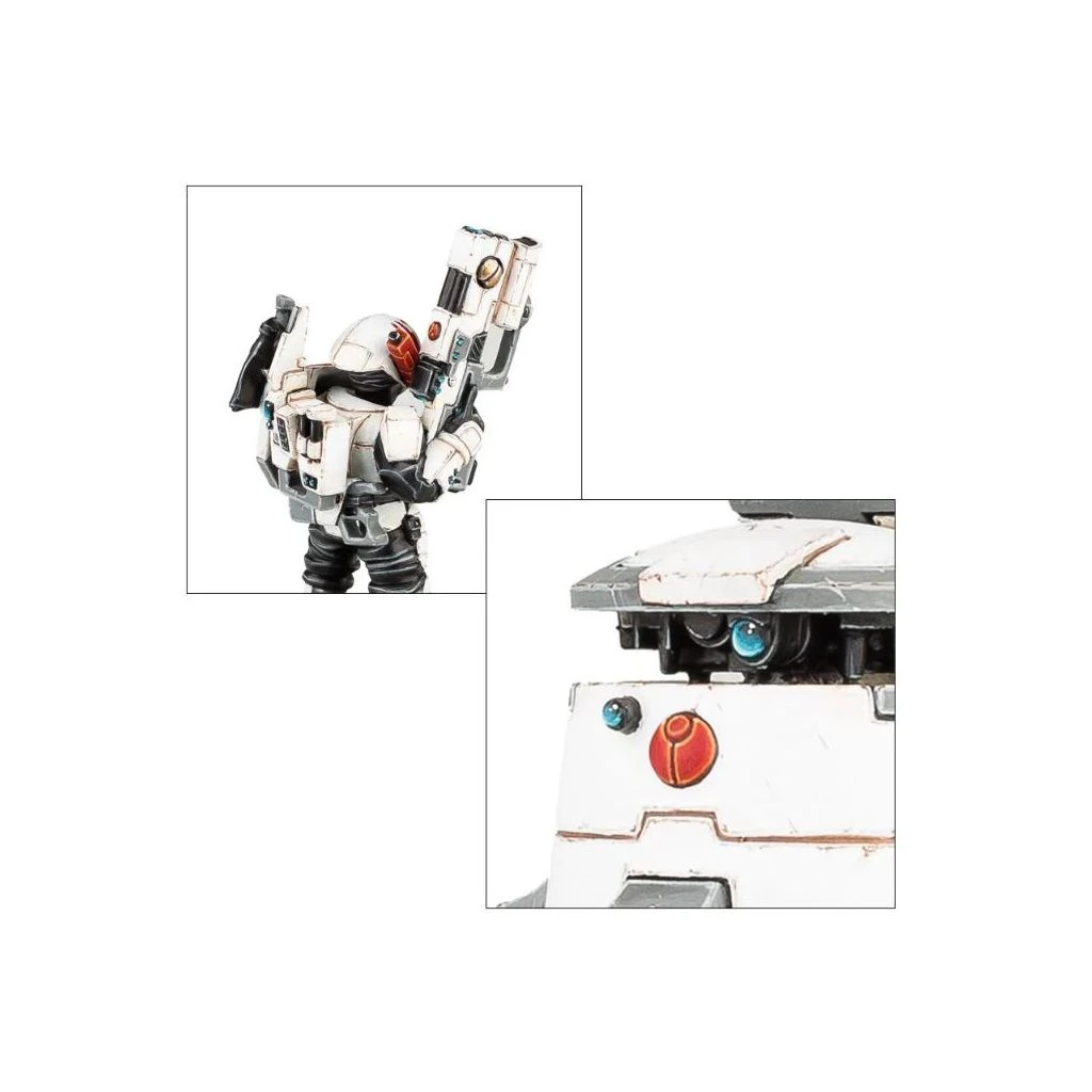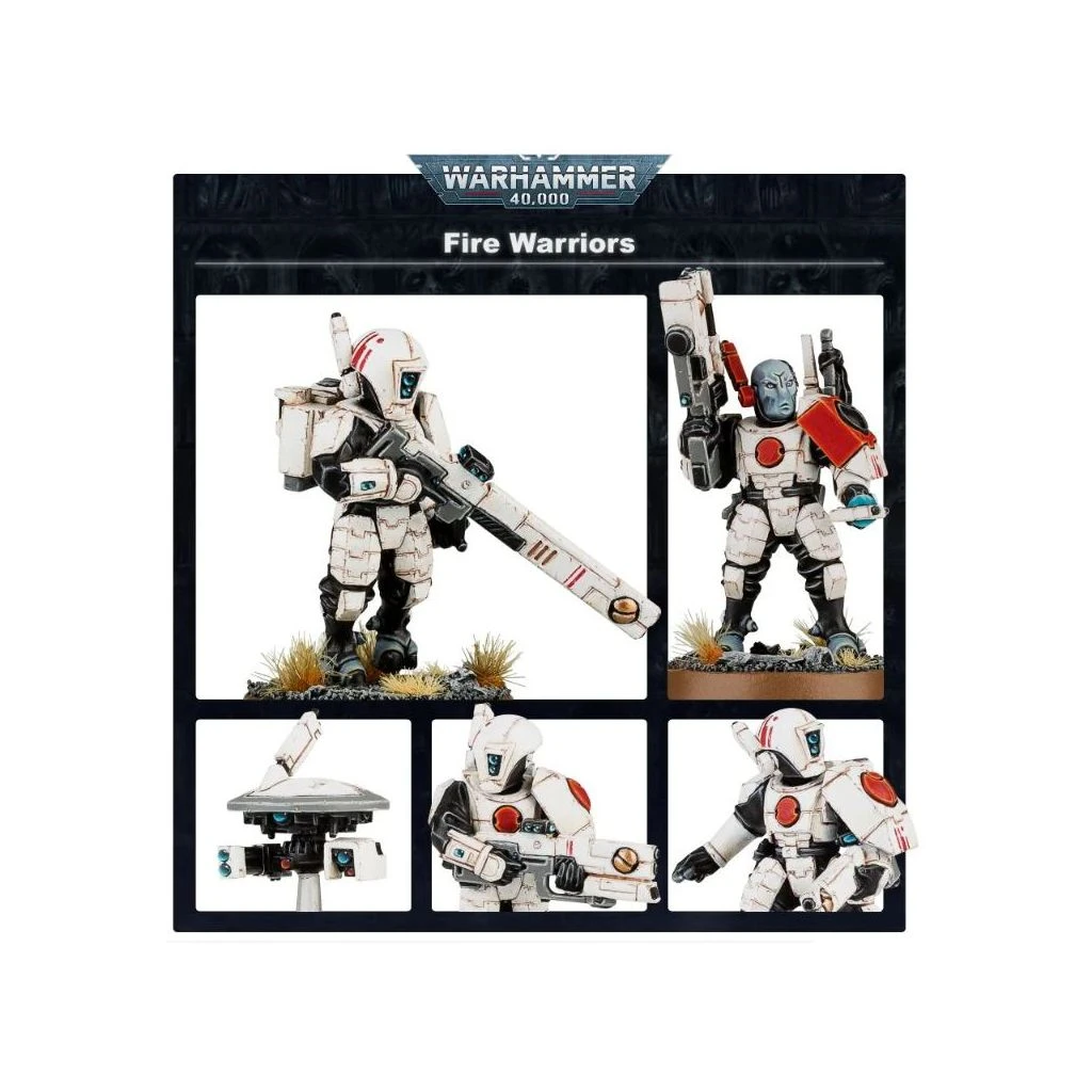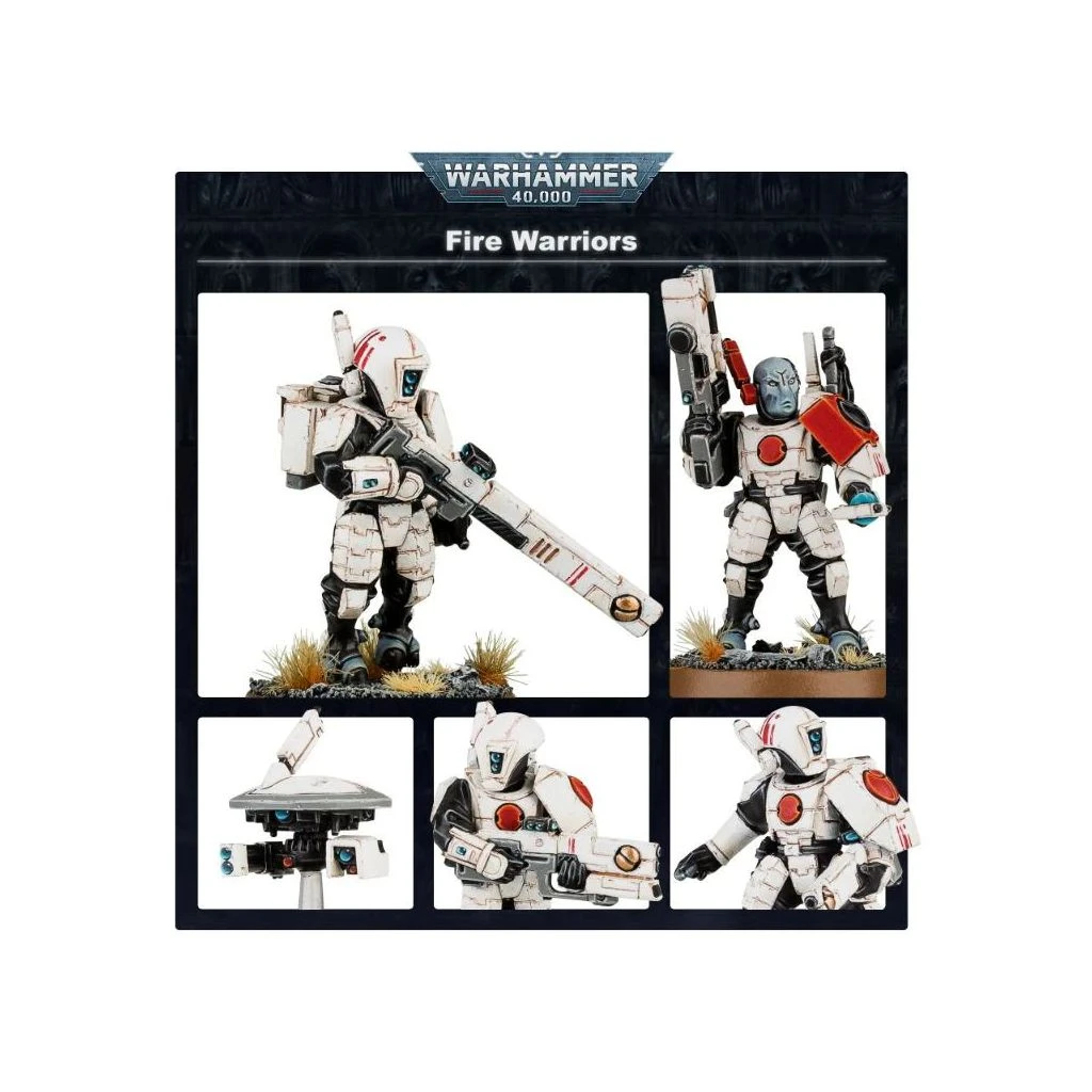 L’avenir n’est pas éclairé que par la lumière du Bien Suprême, il y a aussi celle des fusils à impulsions. Les vaillants Fire Warriors, forts de leur zèle et de leur foi absolue dans la destinée de leur peuple, se battent avec une ferveur irrésistible et une compétence enviable. Nantis des progrès technologiques effrénés des ingénieurs T’au, ils ont des armures légères mais solides et des armes puissantes et fiables. Une Fire Warrior Strike Team est un peloton de troupes de choc prompt à intervenir, qui dresse un mur de tirs à impulsions, jette des grenades à onde électromagnétique et dirige le feu d’une puissante tourelle d’appui tactique vers le peu d’ennemis qu’il reste.