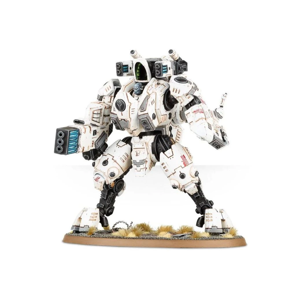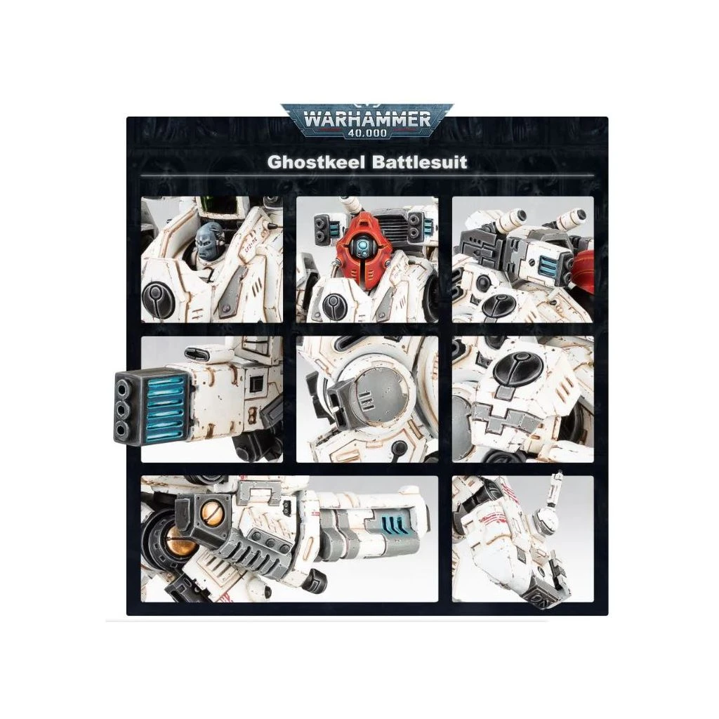 Arme de haute technologie, terriblement mortelle, massive et quasiment indétectable, l’exo-armure XV95 Ghostkeel démontre sans conteste l’avancée de la technologie militaire T’au. Pilotée par un guerrier T’au sélectionné, la Ghostkeel peut surgir de nulle part, déclencher un déluge de feu incroyable avec son collisionneur à fusion, avant de disparaître à la faveur du chaos qu’elle a semé. Cette exo-armure est hérissée de contre-mesures avancées qui la rendent invisible aux senseurs adverses – les armes refusent de se verrouiller sur la cible et les rares tirs qui parviennent à viser sa position approximative sont déjoués par un dispositif spectaculaire de leurres et de contre-mesures électroniques.