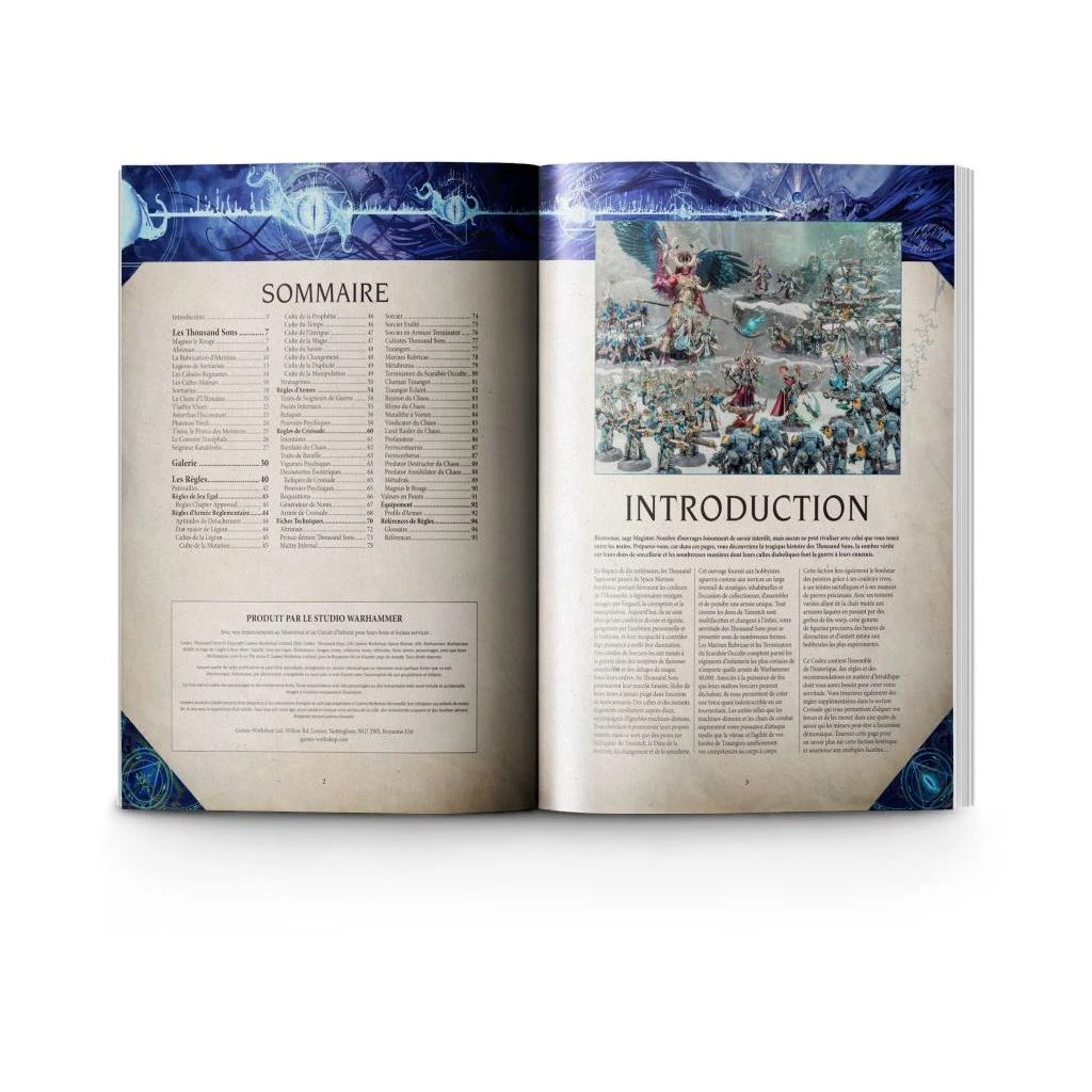 – Les rĂšgles des unitĂ©s accessibles aux armĂ©es de Thousand Sons, dont 25 fiches techniques