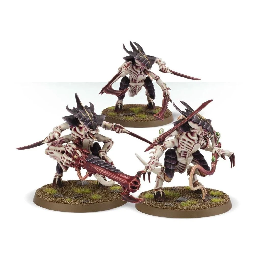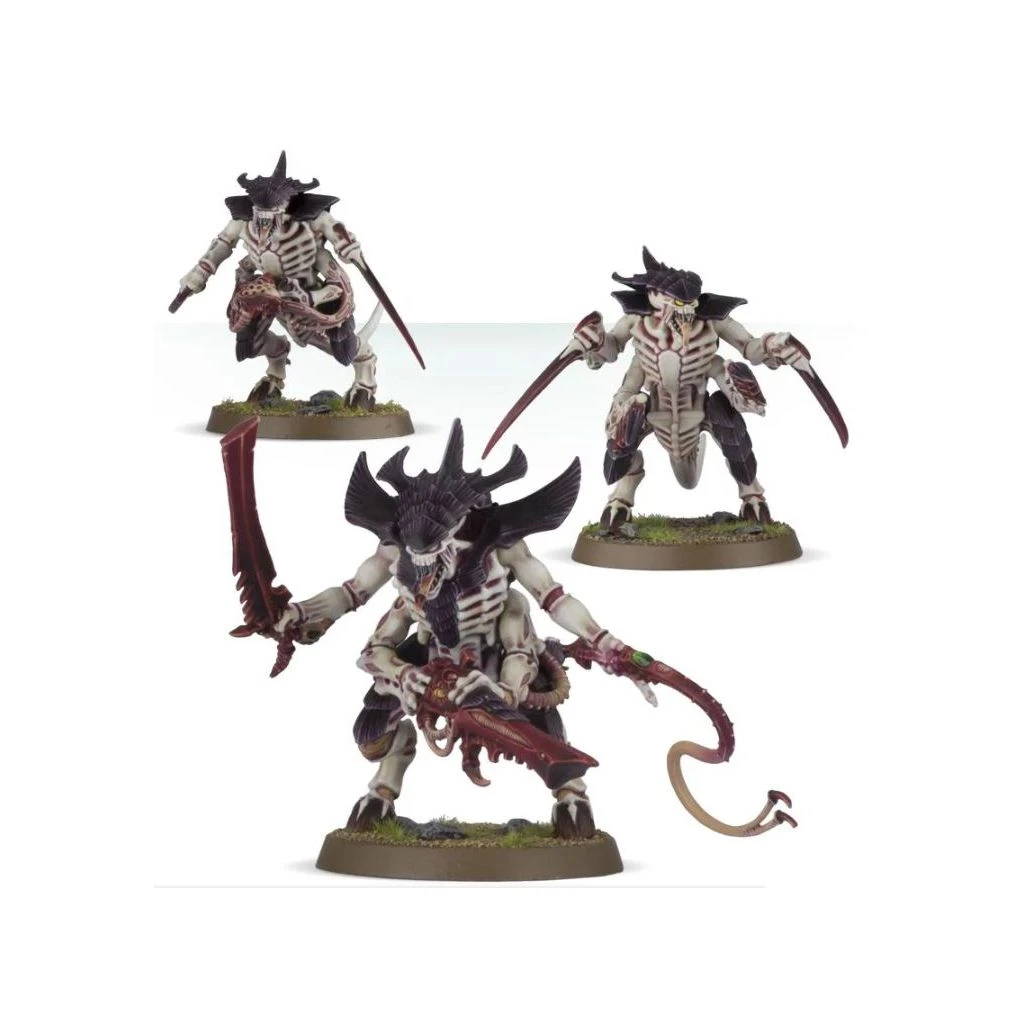 Il y a trois poses différentes pour les figurines de Guerriers Tyranides, et chacune peut recevoir n’importe quelle combinaison d’armes incluse sur la grappe. Le choix d’armes est d’ailleurs impressionnant: 3 paires de bioknouts, 3 paires de poings épineux, 3 dévoreurs, 3 paires de serres perforantes, 3 paires de griffes tranchantes, 3 crache-mort, 3 paires d’épées d’os, 1 canon venin, 1 étrangleur et 3 paires de crochets. Toutes ces armes peuvent être combinées en fonction du rôle que vous voulez donner à vos Guerriers Tyranides.