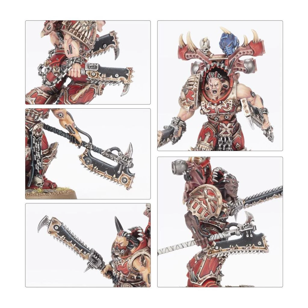 Les World Eaters se sont pleinement abandonnés à l’adoration de Khorne. Certains d’entre eux permettent même à des entités démoniaques de prendre possession de leurs corps en échange d’une puissance inaccessible au commun des mortels. C’est notamment le cas des Occiliés, ces meneurs qui partagent leur corps avec l’esprit d’un Buveur de Sang, transformant celui-ci en une véritable arme vivante constituée de lames, de griffes et de tronçonneuses. Dans leur sillage, c’est toute une ménagerie de guerriers frénétiques qui se rue en avant, prêts à déchiqueter tous leurs ennemis.