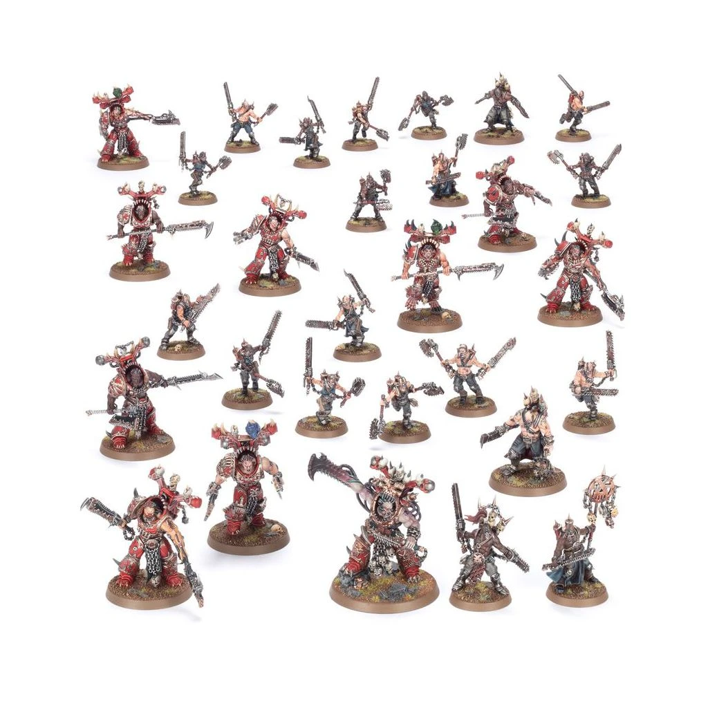 Cette boîte remplie à ras bord contient une force de World Eaters à utiliser dans vos parties de Warhammer 40,000. Menée par un Occilié et soutenue par des Octoliés ou des Octoliés Exaltés, elle est idéale pour un style de jeu agressif. Deux unités de Chakhals viennent compléter la force et fournir de la chair à canon à cet arsenal de destruction.
