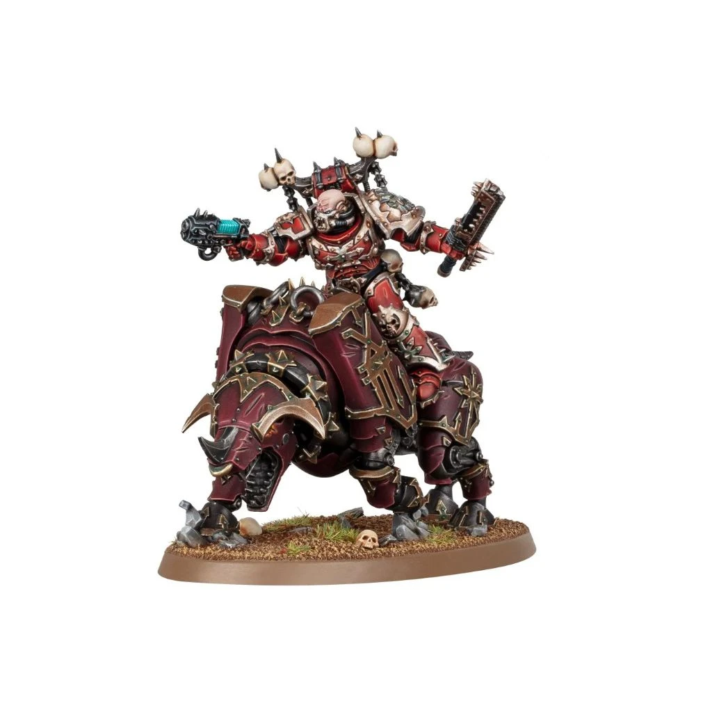 Les Seigneurs des World Eaters ont passé des milliers d’années à la tête de leurs guerriers pour livrer des batailles sanglantes dans toute la galaxie. Certains ont perpétré des carnages si terrifiants que le Collecteur de Crânes les a récompensés par un juggernaut, une monture démoniaque sauvage à la peau d’airain et à l’ichor brûlant, capable de tout écraser sur son chemin tandis que ce duo mortel charge dans la mêlée.